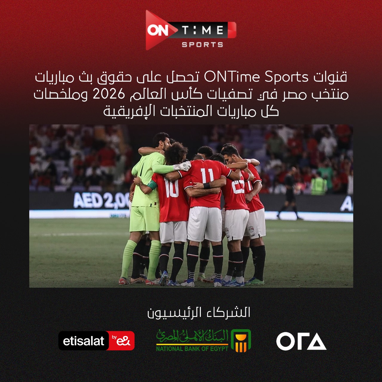 قنوات ON Time Sport تحصل على حقوق بث مباريات منتخب مصر في تصفيات كاس العالم 2026 (بيان)