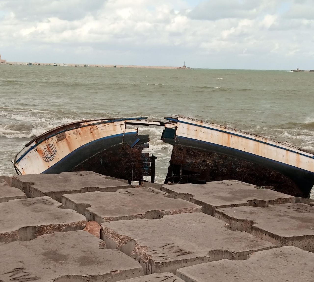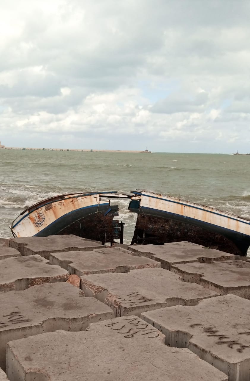 بسبب ارتفاع الأمواج والطقس السيء.. تحطم قارب صيد بشاطئ الأنفوشي بالإسكندرية