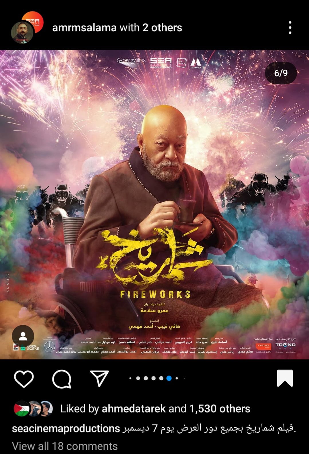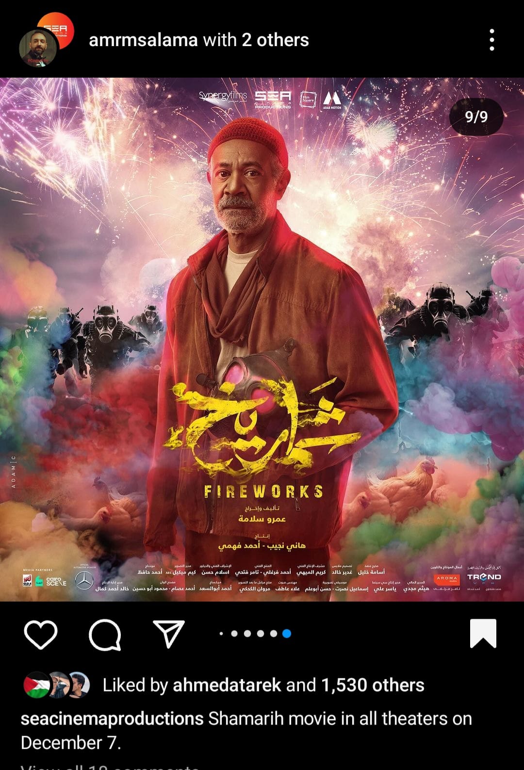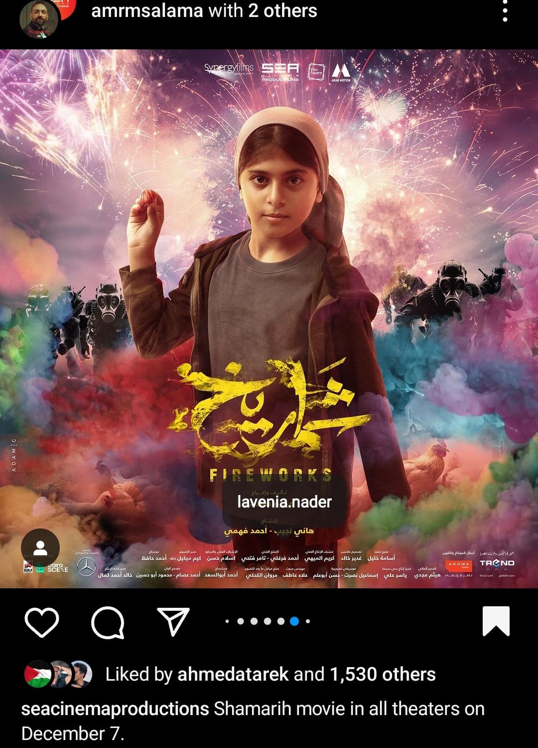 وكتب سلامة:"فيلم شماريخ بجميع دور العرض يوم 7 ديسمبر.