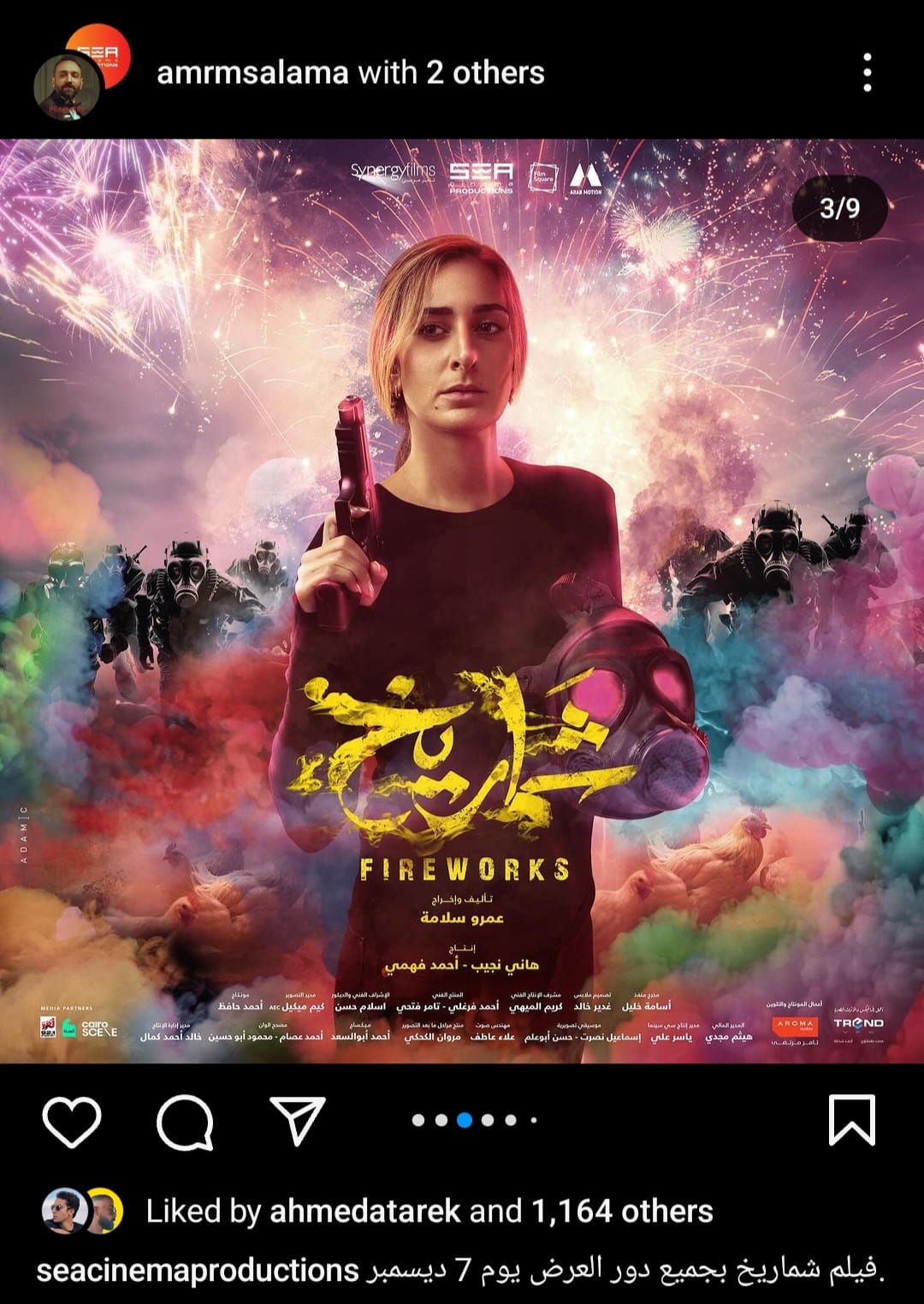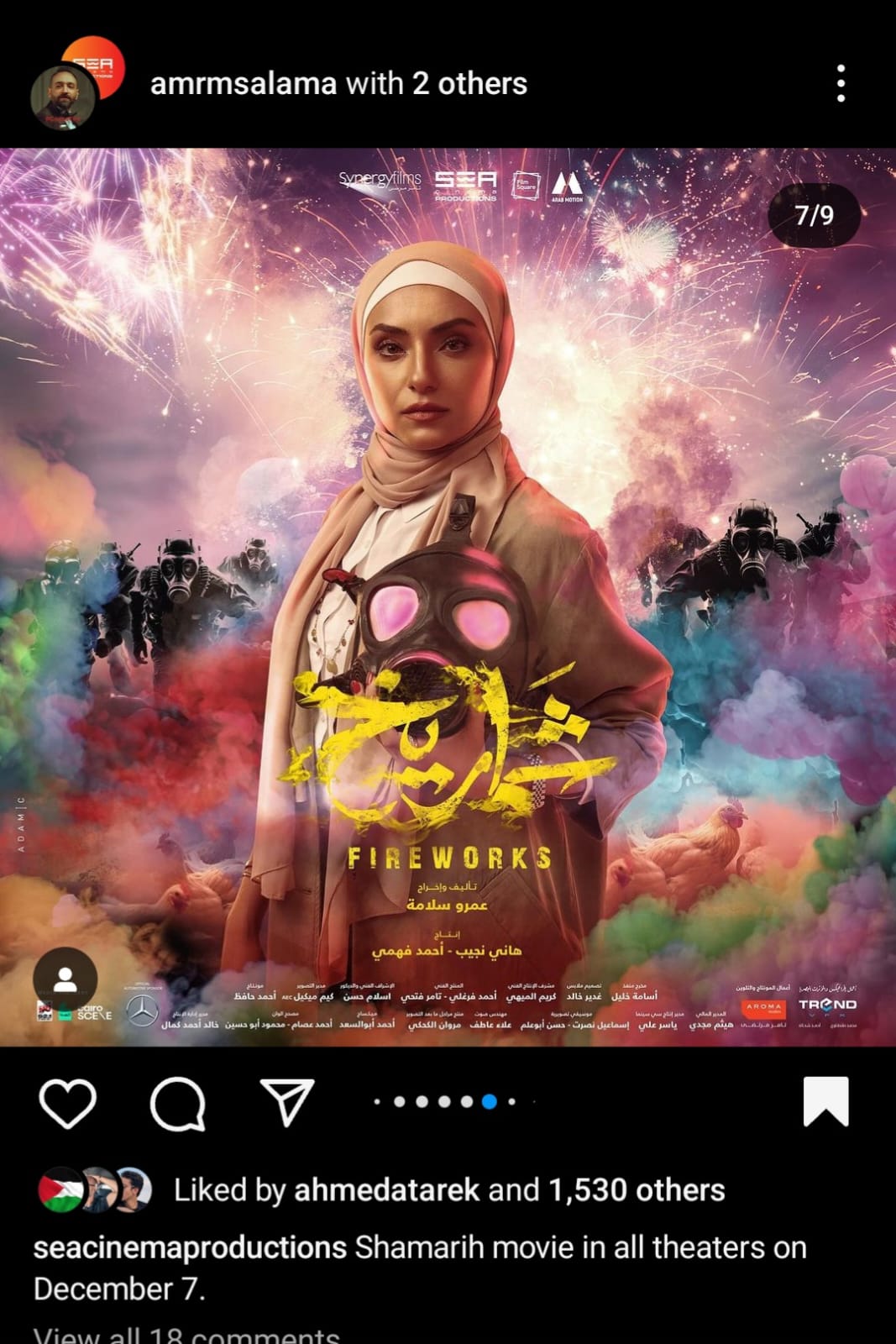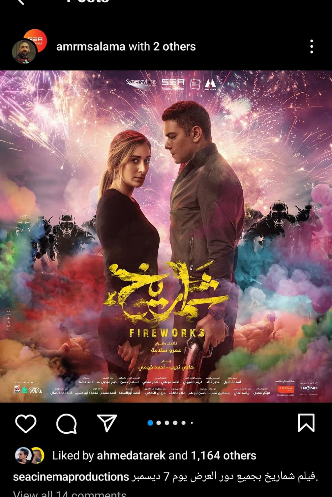 وكتب سلامة:"فيلم شماريخ بجميع دور العرض يوم 7 ديسمبر.