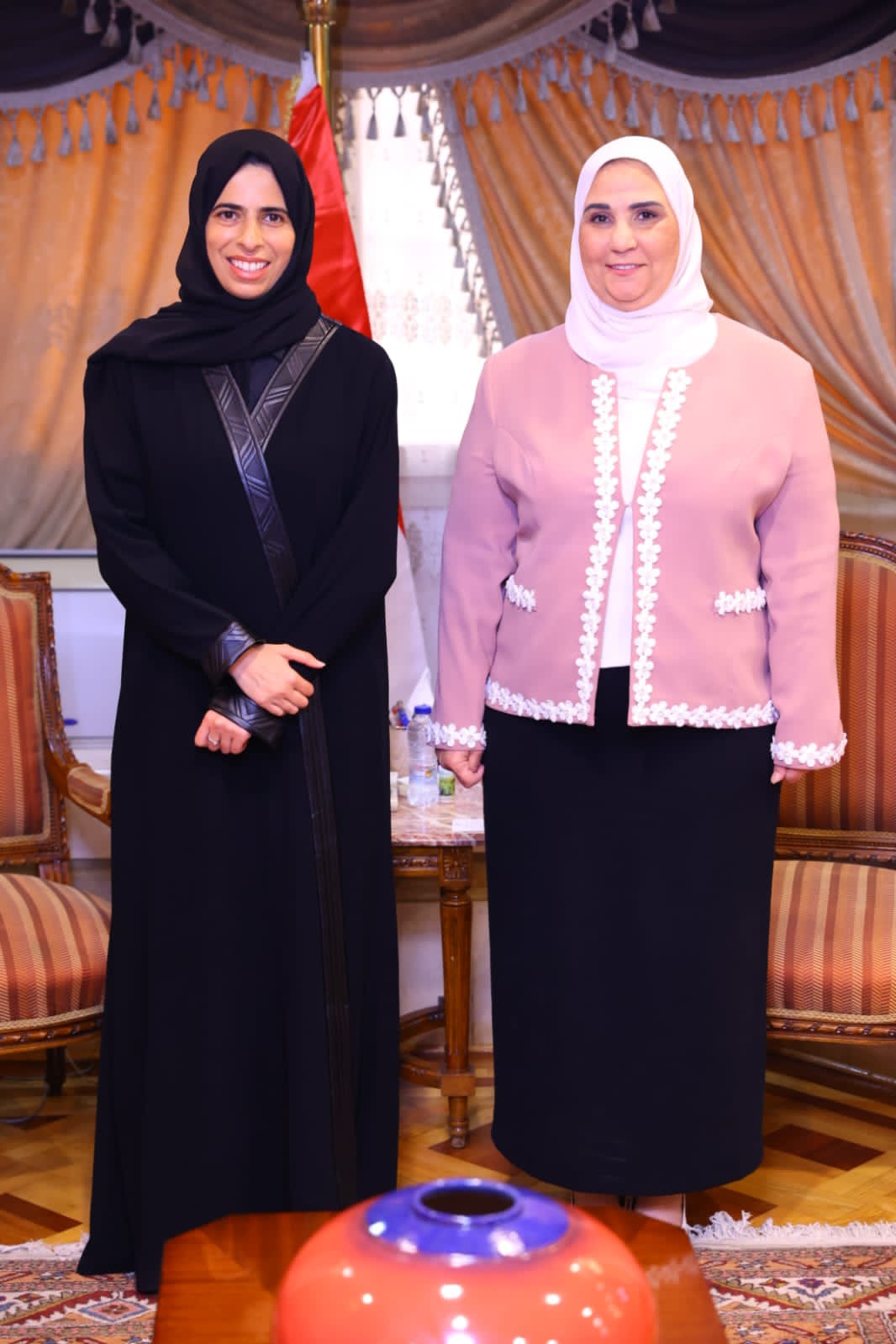 استقبلت نيفين القباج وزيرة التضامن الاجتماعي ونائب رئيس الهلال الأحمر المصري، السيدة لولوة الخاطر وزيرة الدولة للتعاون الدولي بقطر، وذلك بشأن التنسيق لإعداد وتوصيل مستلزمات الإغاثة والمساعدات القطرية للأشقاء الفلسطينيين في قطاع غزة عبر الهلال الأحمر المصري.