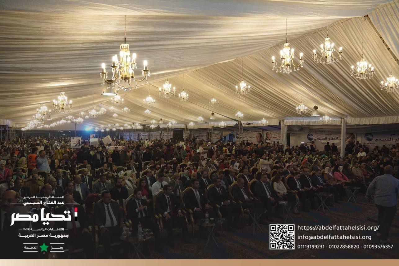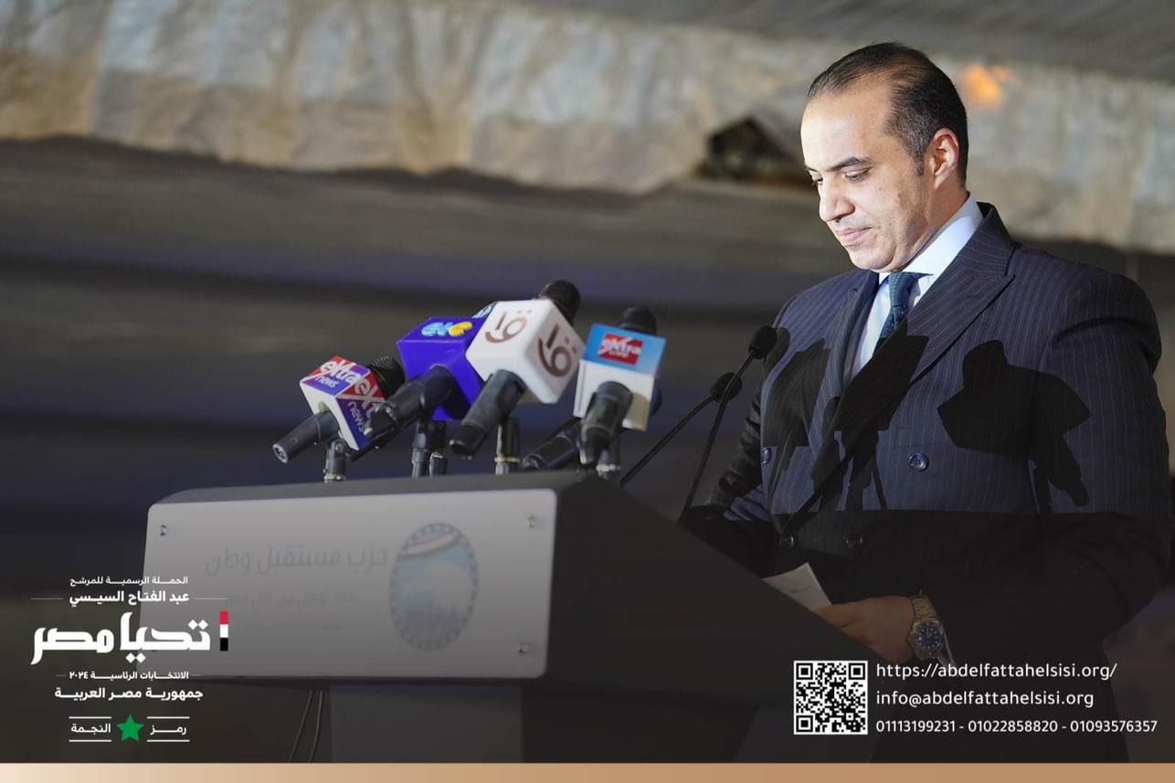 وأوضح أن هذا الحشد والدعم لمرشحنا الرئاسي السيد عبد الفتاح السيسي يرجع لسبب أساسي وهو أن مرشحنا مخلص في عمله ولديه الرغبة الصادقة لوضع مصر والمصريين دائماً في المكانة التي تليق، حيث أكد أن الدولة المصرية شهدت إنجازات عديدة في جميع المجالات في جميع محافظات الجمهورية موضحاً أن المرحلة الصعبة من بناء الوطن قد مرت والتي شملت مشروعات البنية التحتية ومشروعات اقتصادية ضخمة وتدشين العديد من المبادرات الصحية ومبادرة حياة كريمة وغيرها، مؤكداً أن الإنجازات لم تكن أن تتحقق بدون قيادة حكيمة وواعية قادرة على مواجهة جميع التحديات التي تواجهها الدولة المصرية سواء في الداخل أو الخارج.