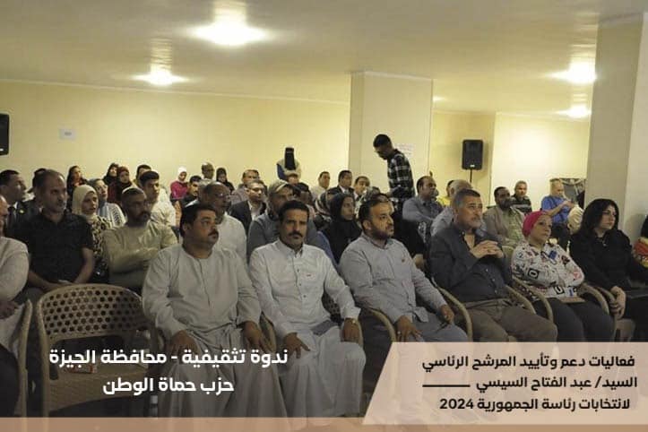 - نظمت أمانة محافظة الجيزة بحزب حماة الوطن ندوة تثقيفيه بعنوان "مهارات الاتصال السياسي" معلنين دعمها الكامل للسيد المرشح عبدالفتاح السيسي، كما قامت الأمانة بعرض إنجازات المرشح في الفترة السابقة منذ 2014 وحتى الآن.