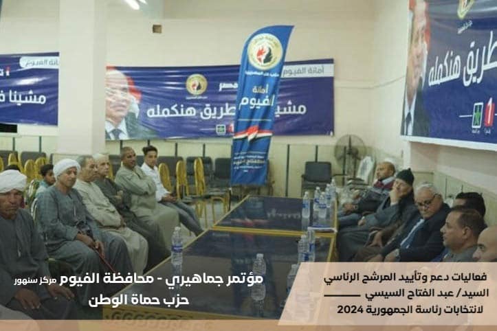 - عقدت أمانة محافظة الفيوم بحزب بمركز شنهور مؤتمرا حاشدا لدعم المرشح الرئاسي عبد الفتاح السيسي من أجل التأكيد على الوقوف بجانب الدولة المصرية واستكمالا لمسيرة الانجازات.