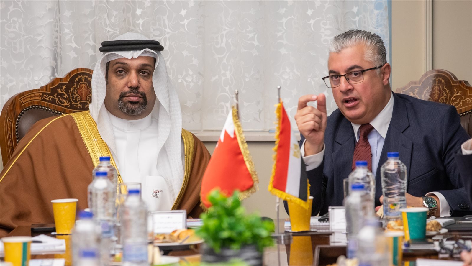 استقبل السيد وليد جمال الدين، رئيس الهيئة العامة للمنطقة الاقتصادية لقناة السويس، وفد وزاري رفيع المستوى من دولة البحرين الشقيقة برئاسة الشيخ سلمان بن خليفة آل خليفة، وزير المالية والاقتصاد الوطني بدولة البحرين، وبحضور كلاً من حمد بن فيصل المالكي، وزير شئون مجلس الوزراء، وعبدالله بن عادل، وزير الصناعة والتجارة، و نور بنت علي الخليف، وزيرة التنمية المستدامة، و فوزية بنت عبد الله، سفيرة مملكة البحرين لدى القاهرة، وعدد من القيادات من الجانبين، حيث جاءت زيارة الوفد إلى مقر اقتصادية قناة السويس بالعاصمة الإدارية الجديدة للتعرف على الفرص الاستثمارية المتاحة وبحث سبل التعاون في مختلف المجالات.