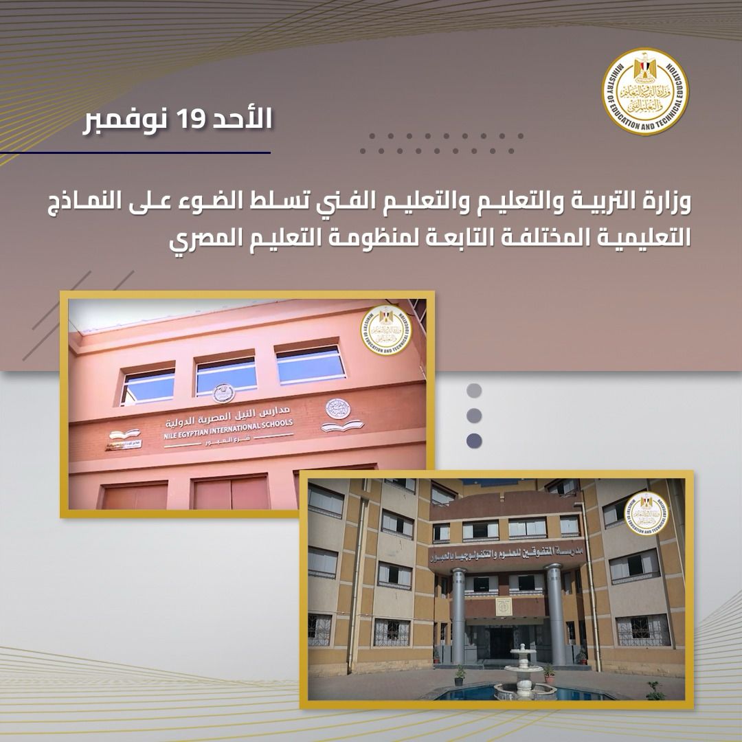 في اطار جهود الوزارة للتوعية بالنماذج التعليمية المختلفة داخل منظومة التعليم المصري، تقوم الوزارة بنشر عدد من الأفلام التعريفية لكل نموذج من النماذج التعليمية على الصفحة الرسمية للوزارة لتسليط الضوء وابراز هذه النماذج.