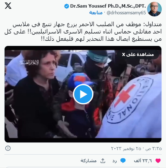 وتدول نشطاء على مواقع التواصل الاجتماعي فيديو لما وصف أنه تورط لأحد موظفي الصليب الأحمر في عملية تجسس على حماس.