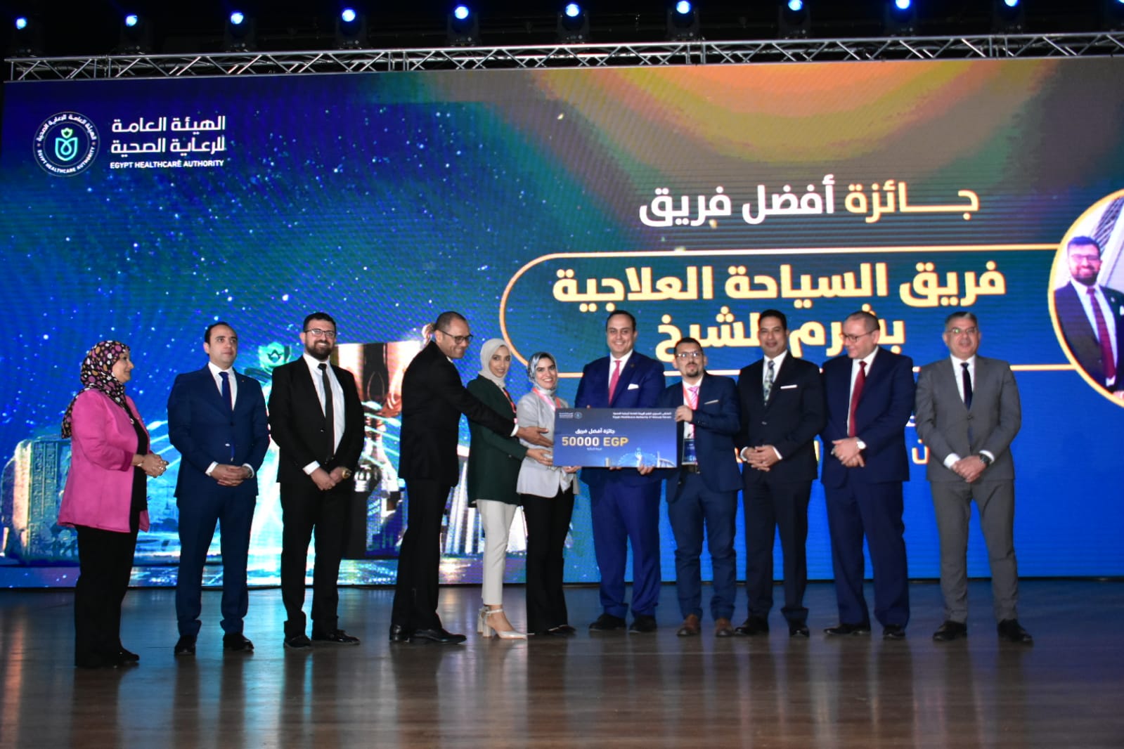 كما حصل على جائزة أفضل فريق لعام 2023، فريق السياحة العلاجية بمستشفى شرم الشيخ فرع جنوب سيناء لتحقيق الهيئة العامة للرعاية الصحية مكانة وتمركز في سوق السياحة العلاجية الدولية، وتحقيق أعلي معدلات لرضاء العملاء من السائحين، وكذلك تحقيق المستهدفات المالية والتسويقية لمشروع السياحة العلاجية بالهيئة خلال عام 2023.