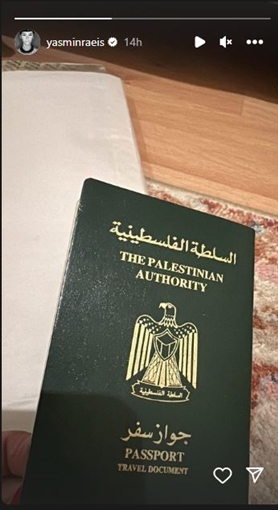 ياسمين رئيس تكشف عن جواز سفرها الفلسطيني