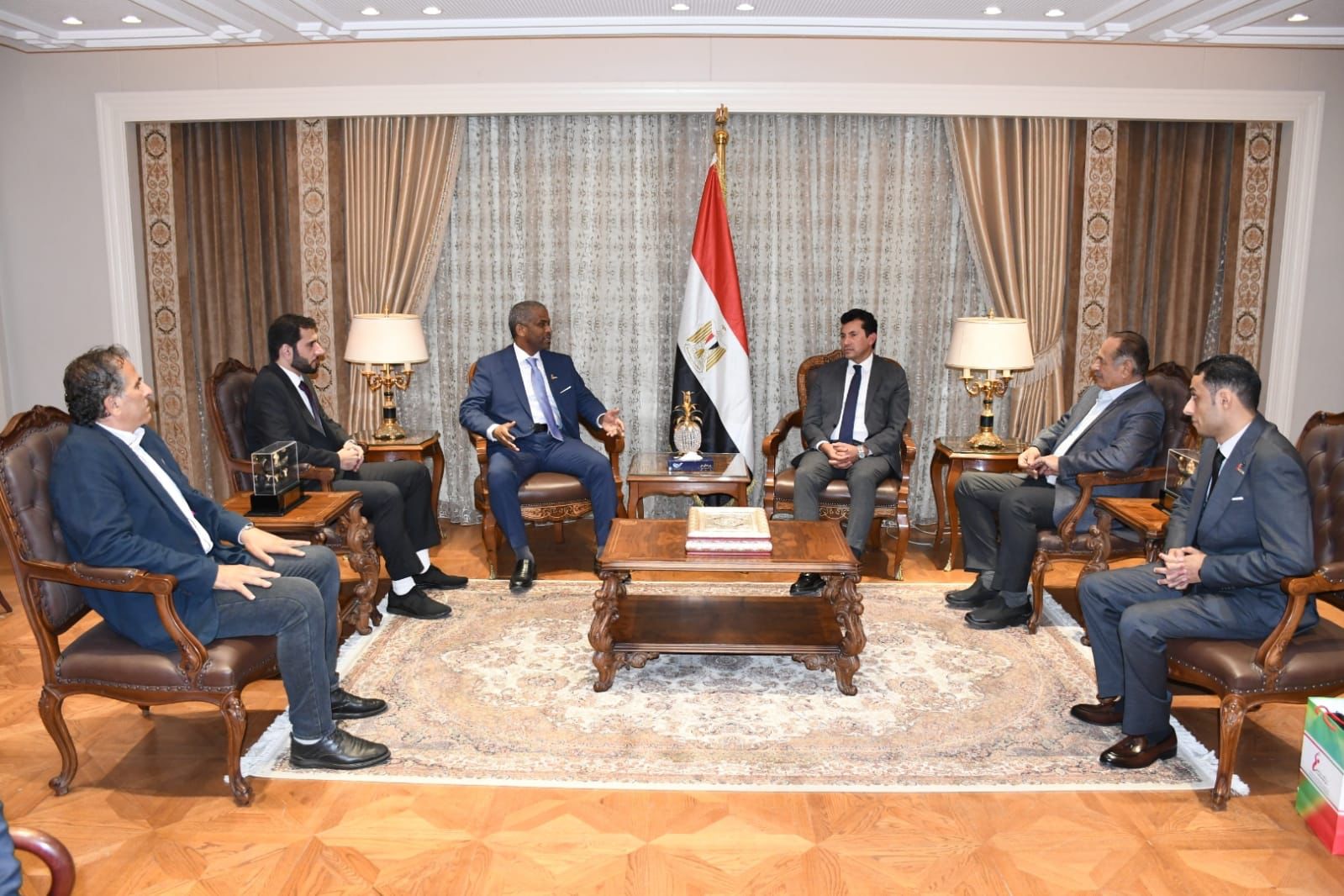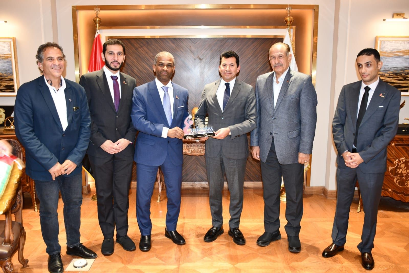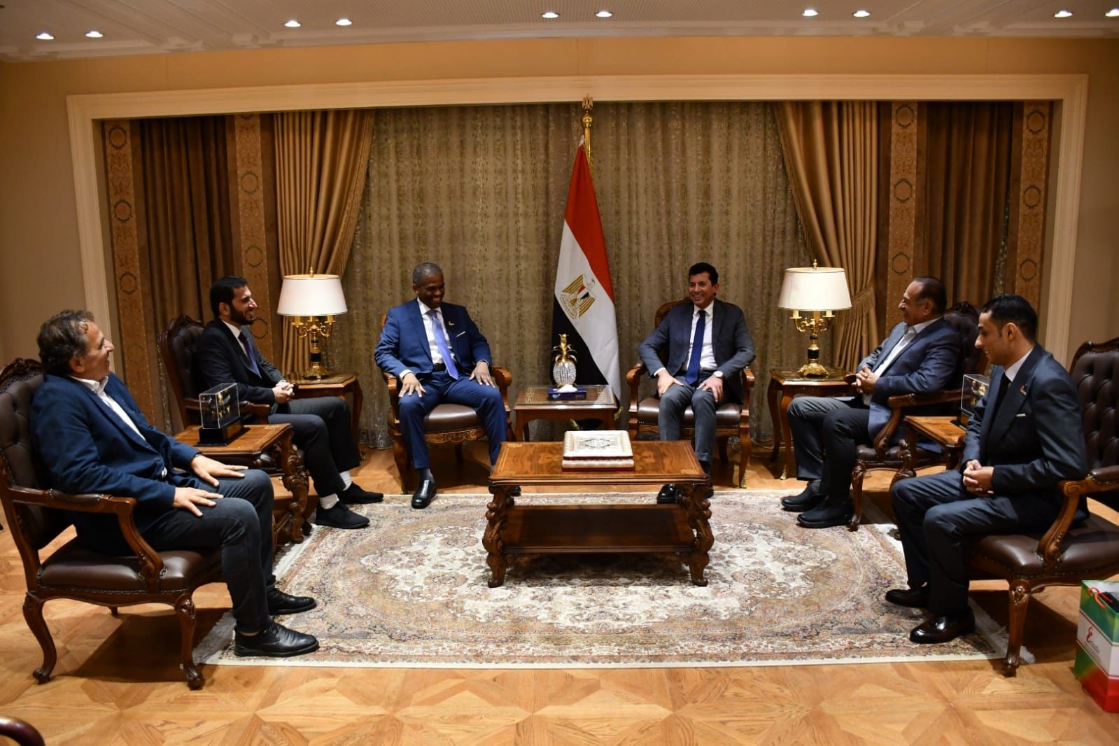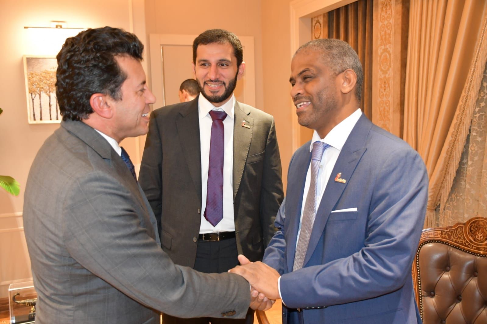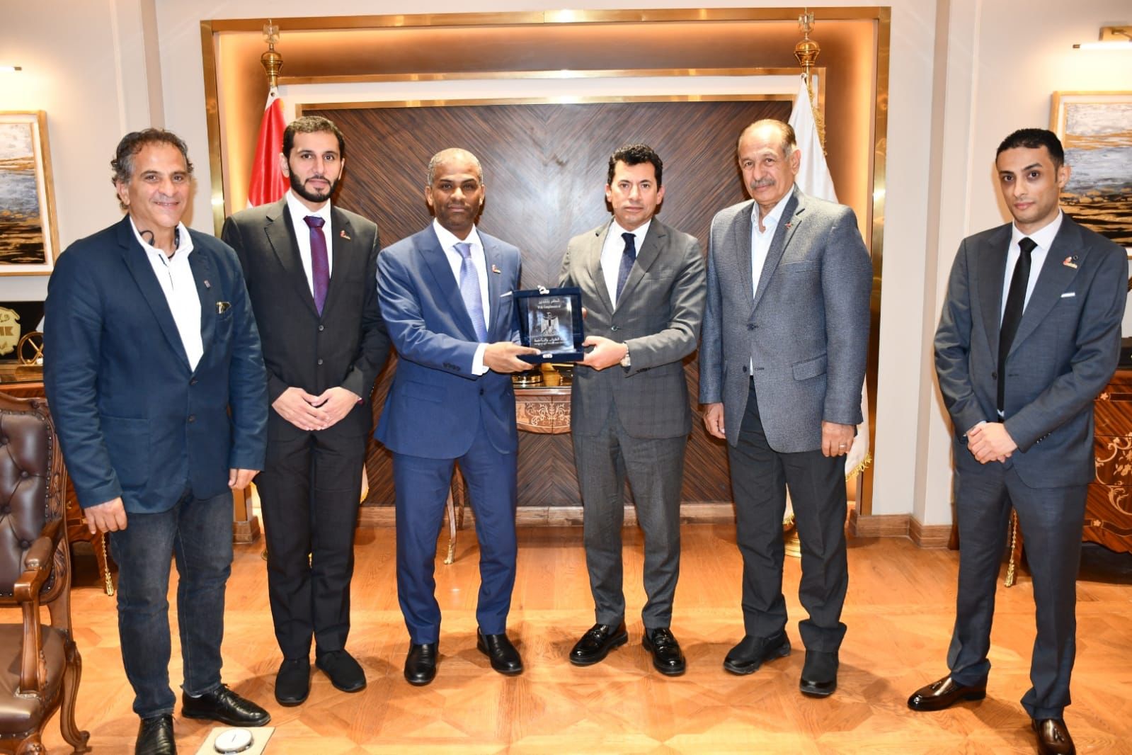 التقي الدكتور أشرف صبحي، وزير الشباب والرياضة، مع الأستاد نبيل محمد عاشور، رئيس الإتحاد الإماراتي لكرة اليد، بحضور الأستاذ محمد الآمين، رئيس الاتحاد المصري، و الأستاذ إسلام احمد، المدير التنفيذي للإتحاد الإماراتي لكرة اليد، الكابتن عاصم السعدني، رئيس مسابقات المحترفين بالاتحاد المصري، الدكتور عمرو الحداد مساعد وزير الشباب والرياضة للتنمية الرياضية.