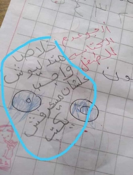 تضمنت الورقة رسالة مكتوبة من المعلمة" أرجو عدم الكتابة للطفل"، لترد عليها الأم “ خلاص ماتدليوش واجب علشان مابيعرفش يكتب”.