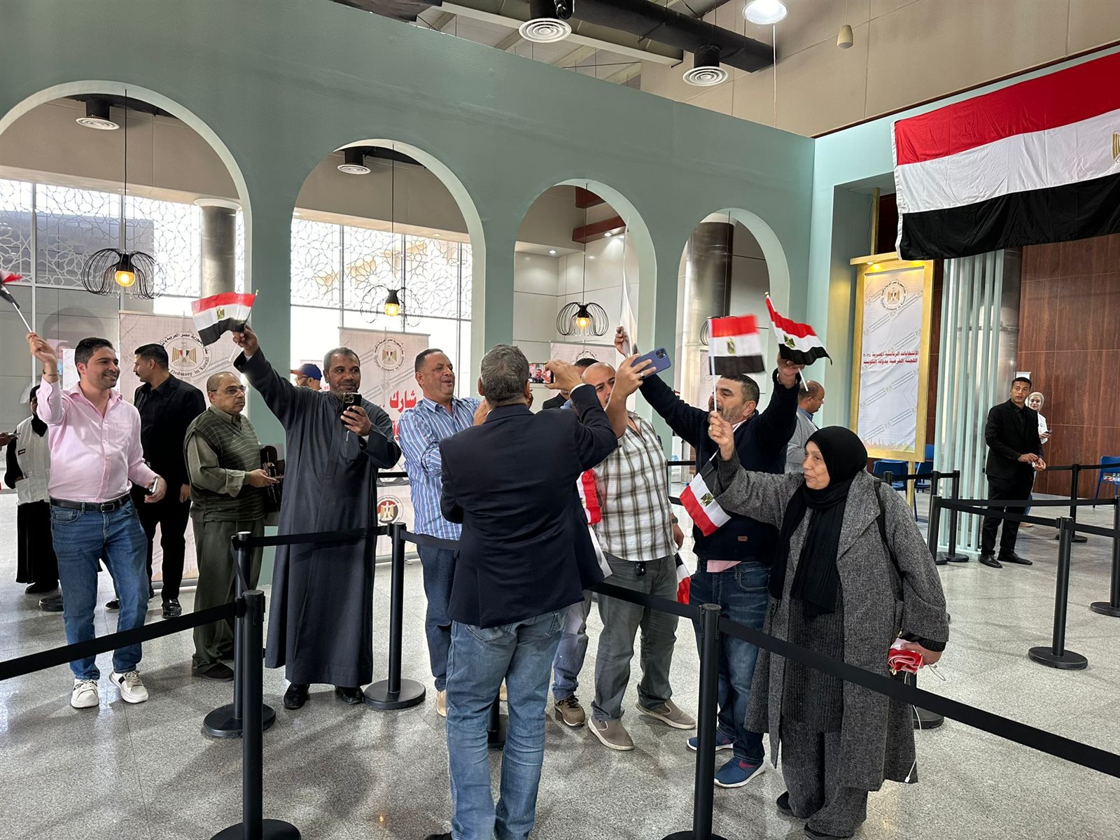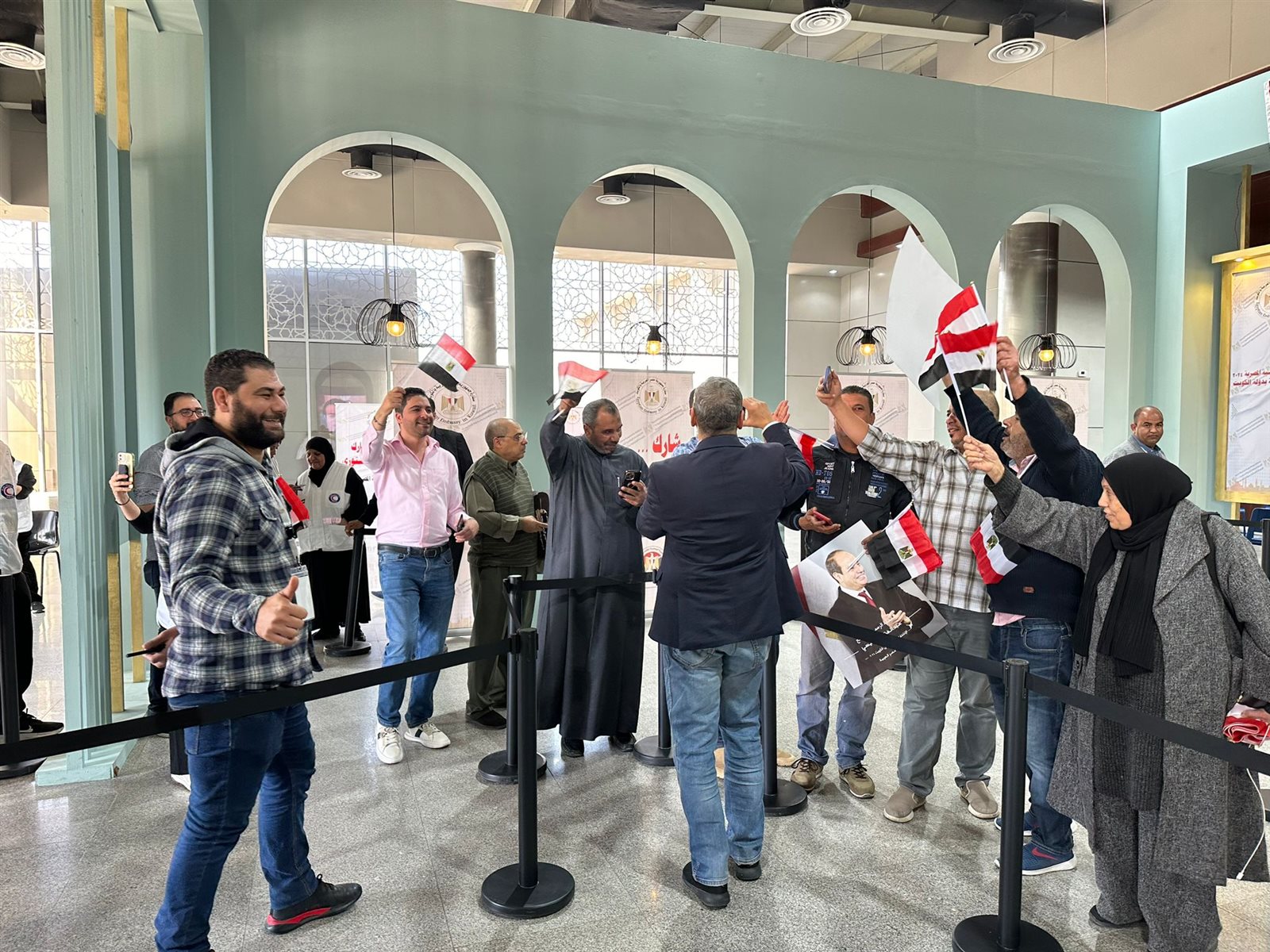 اصطف آلاف الناخبين المصريين المقيمين في الكويت، منذ التاسعة من صباح الجمعة، أمام مقر السفارة المصرية للإدلاء بأصواتهم في الانتخابات الرئاسية، في تظاهرة مملوءة بمشاعر الحب والوفاء والولاء للوطن، مع ترديد الأغاني الوطنية المعبره عن حب الوطن، إذ فتحت سفارة مصر فى الكويت الباب أمام أبناء الجالية المصرية فى بريطانيا، للإدلاء بأصواتهم فى انتخابات رئاسة الجمهورية 2024، فى أول أيام تصويت المصريين فى الخارج، فى تمام التاسعة صباحا بالتوقيت المحلى.