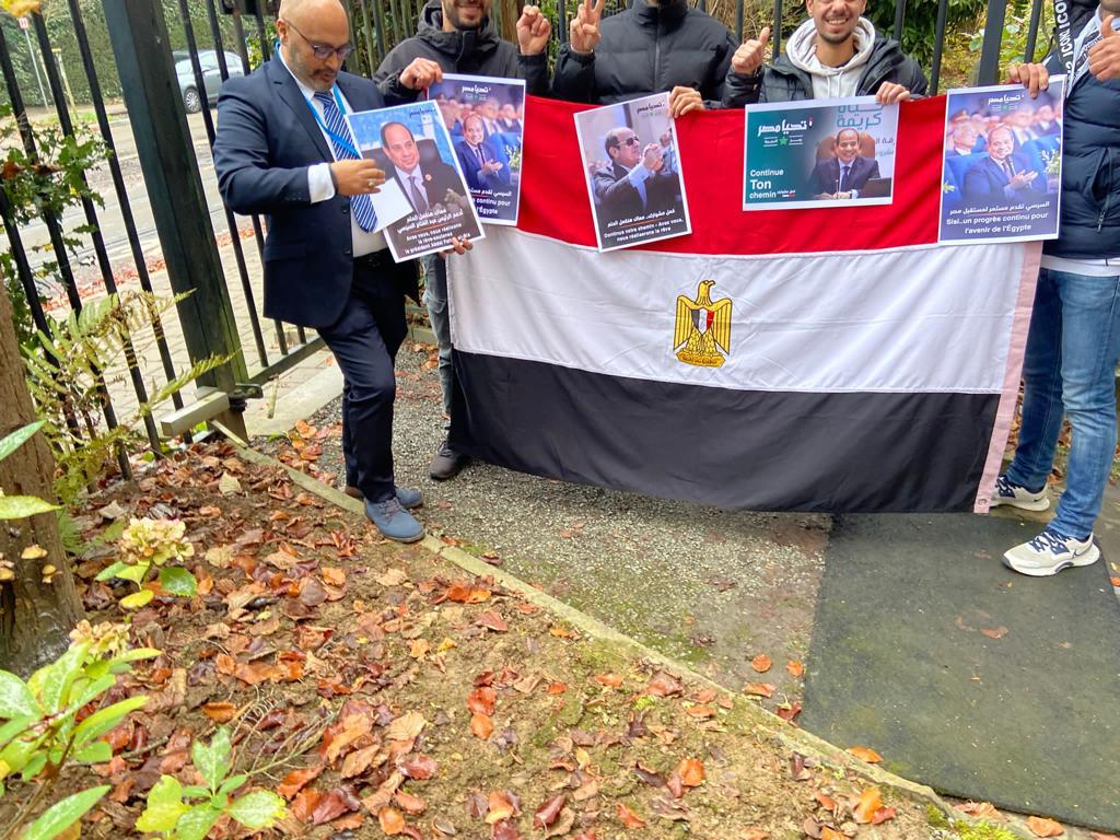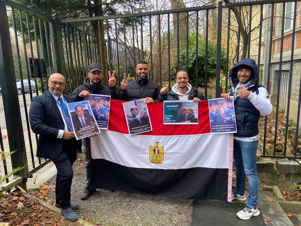 بالاعلام وصور السيسي.. الناخبون في بلجيكا يحتشدون للتصويت بانتخابات الرئاسة
