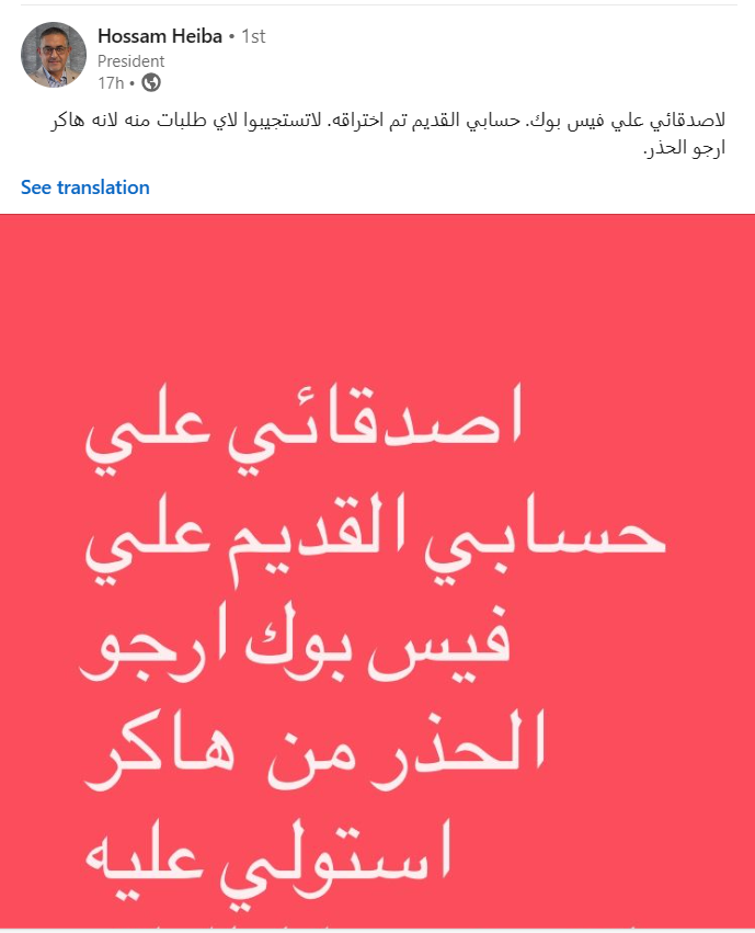 وكانت صفحة الرئيس التنفيذي لهئية الاستثمار قد تعرضت للإختراق من قبل هاكر، في وقت سابق، وطالب وتداولت الصفحة بوست غير مفهوم