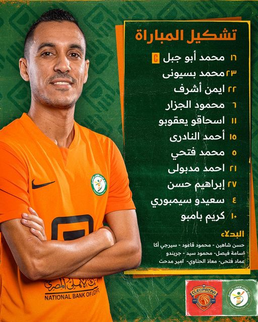 خط الهجوم: احمد مدبولى،إبراهيم حسن، كريم بامبو.