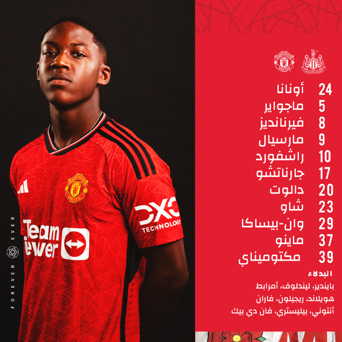 جاء تشكيل مانشستر يونايتد ضد نيوكاسل يونايتد كالآتي