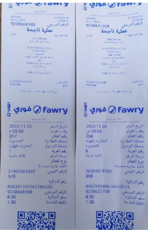 أعلنت الهيئة القومية لسكك حديد مصر، إتاحة الحصول على تذاكر السفر على جميع القطارات الشغالة على خطوط القاهرة منوف طنطا وبشتيل المناشى ايتاى والمنصورة المطرية من خلال منظومة الدفع الفوري من منافذ ووكلاء البيع كخدمة جديدة ولأول مرة بكافة منافذ فورى والتى تعد بمثابة مكاتب لصرف التذاكر و تقدر بـ 320 ألف نقطة بيع على مستوى الجمهورية .