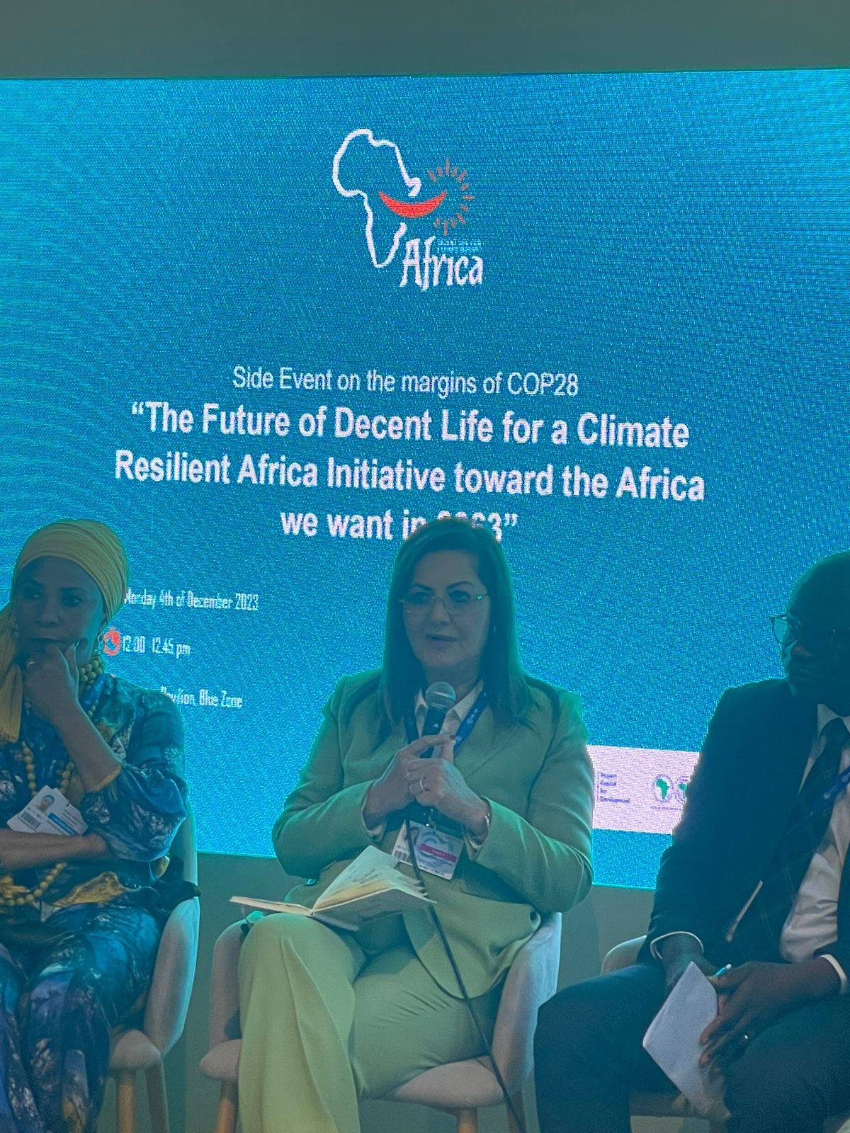 عقدت وزارة التخطيط والتنمية الاقتصادية فعالية بعنوان " مستقبل مبادرة حياة كريمة من أجل افريقيا قادرة على الصمود في مواجهة تغير المناخ نحو أفريقيا التي نريدها في عام 2063" بحضور الدكتورة هالة السعيد، وزيرة التخطيط والتنمية الاقتصادية، وذلك ضمن فعاليات النسخة 28 من مؤتمر الأطراف لاتفاقية الأمم المتحدة الإطارية بشأن تغير المناخ CoP28 المنعقد بدولة الإمارات العربية المتحدة خلال الفترة من 30 نوفمبر حتى 12 ديسمبر الجاري. تناولت الفعالية أهمية مبادرة حياة كريمة لأفريقيا بالنسبة للقارة في ضوء التحديات التنموية والمناخية التي تواجهها.