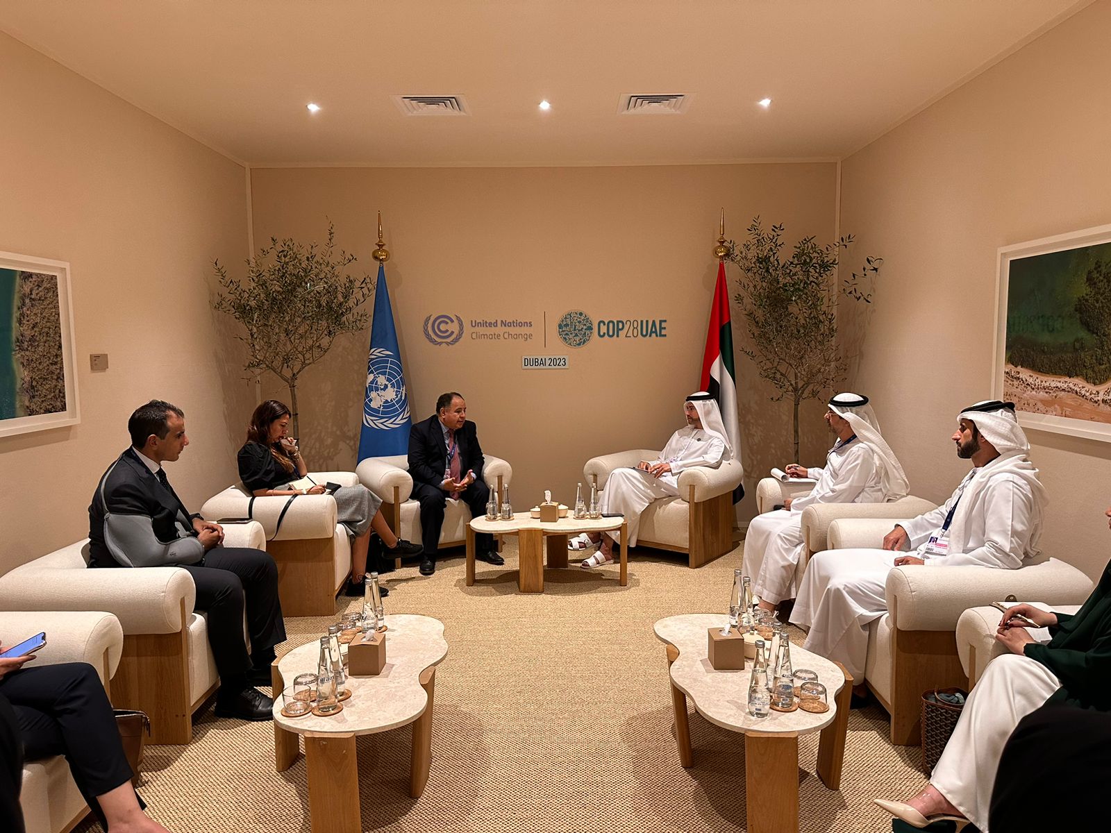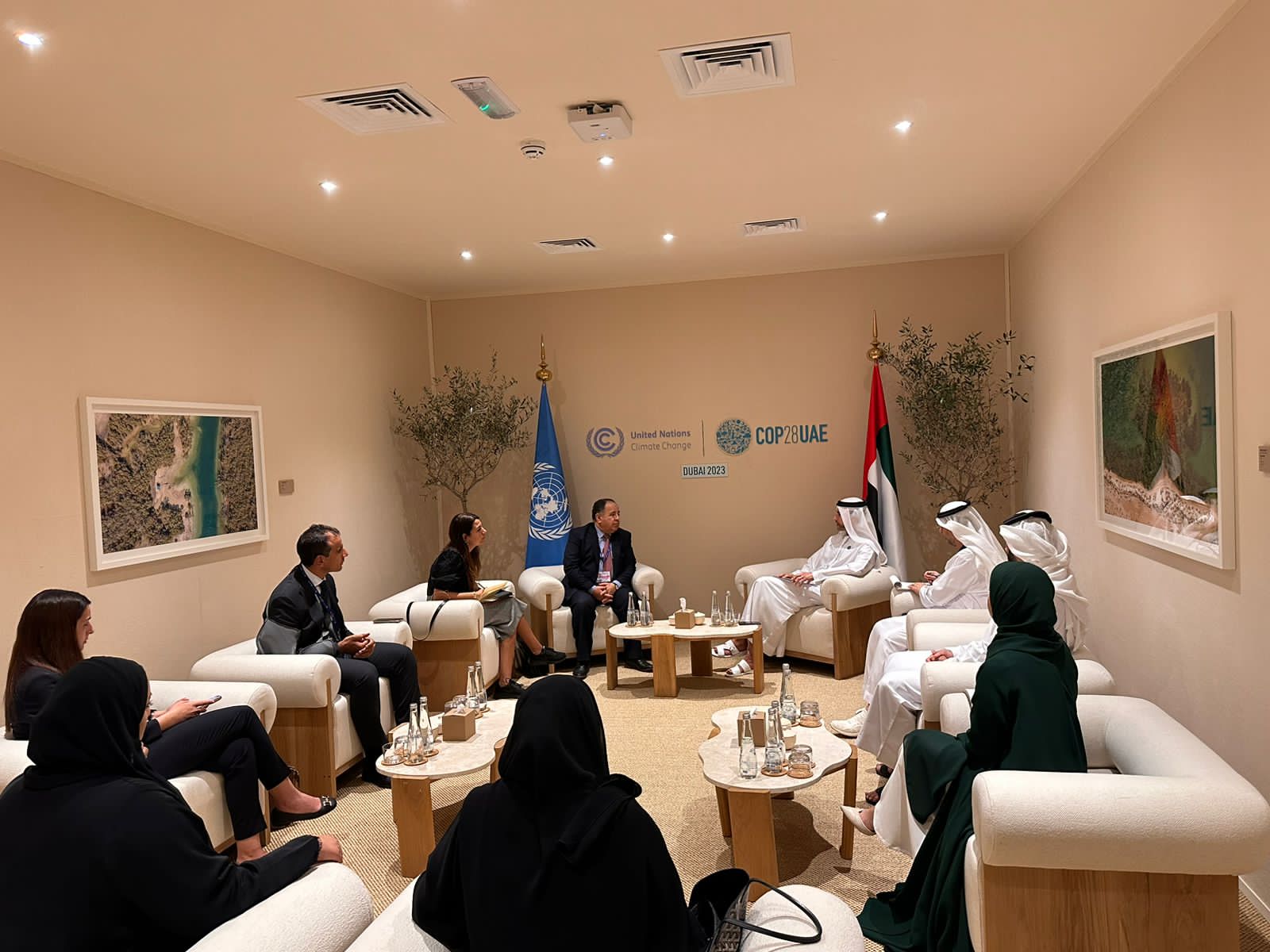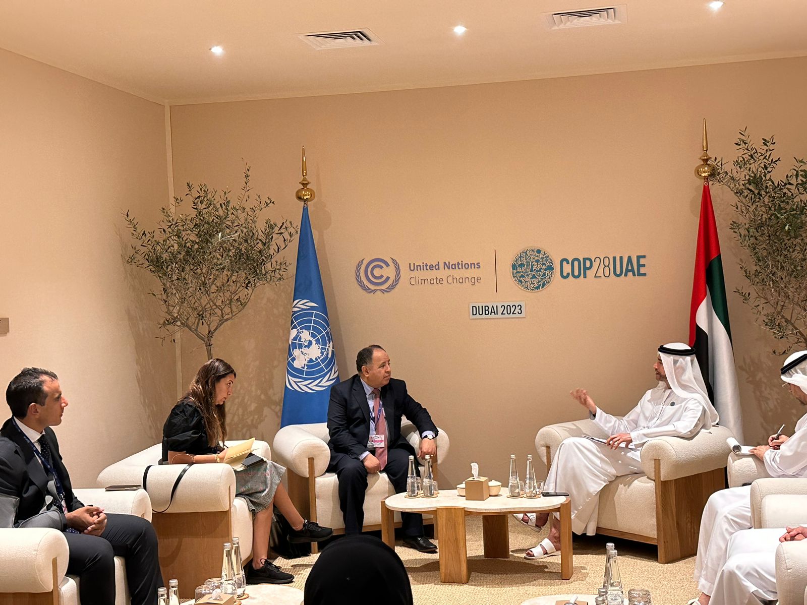 تقدم الوزير، فى اجتماعه مع محمد بن هادي الحسيني وزير الدولة للشئون المالية بدولة الإمارات العربية المتحدة، على هامش مشاركتهما في قمة المناخ «COP 28» المنعقدة بدبي، بأسمى آيات التهاني لدولة الإمارات العربية المتحدة الشقيقة، بنجاح مؤتمر الأطراف الثامن والعشرين لاتفاقية الأمم المتحدة الإطارية لتغير المناخ «COP 28»، وبعيدها الوطني الـ ٥٢، مشيدًا بحسن تنظيم قمة المناخ، وخروجها بصورة متميزة تليق بمكانة دولة الإمارات الشقيقة.