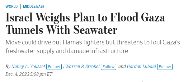 واستندت الصحيفة في معلوماتها إلى ما نقلته عن مسؤولين أمريكيين، ذكروا أن المضخات التي يمكنها نقل آلاف الأمتار المكعبة من المياه في الساعة وإغراق شبكة الأنفاق بغضون أسابيع، تم تركيبها على بعد 1600 متر إلى الشمال من "مخيم الشاطئ" للاجئين. لكن لم يتضح بعد، ما إذا كانت إسرائيل ستفكر باستخدامها قبل إطلاق سراح جميع الرهائن، ممن سبق لحماس أن ذكرت أنها أخفتهم في "أماكن وأنفاق آمنة" من دون أن تفصح عن المزيد.