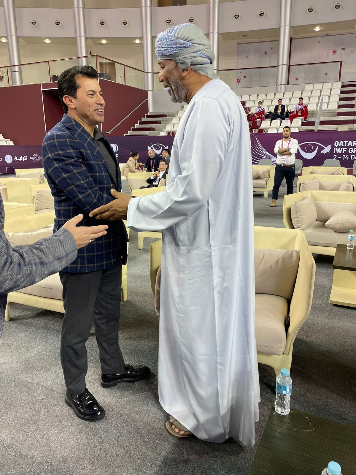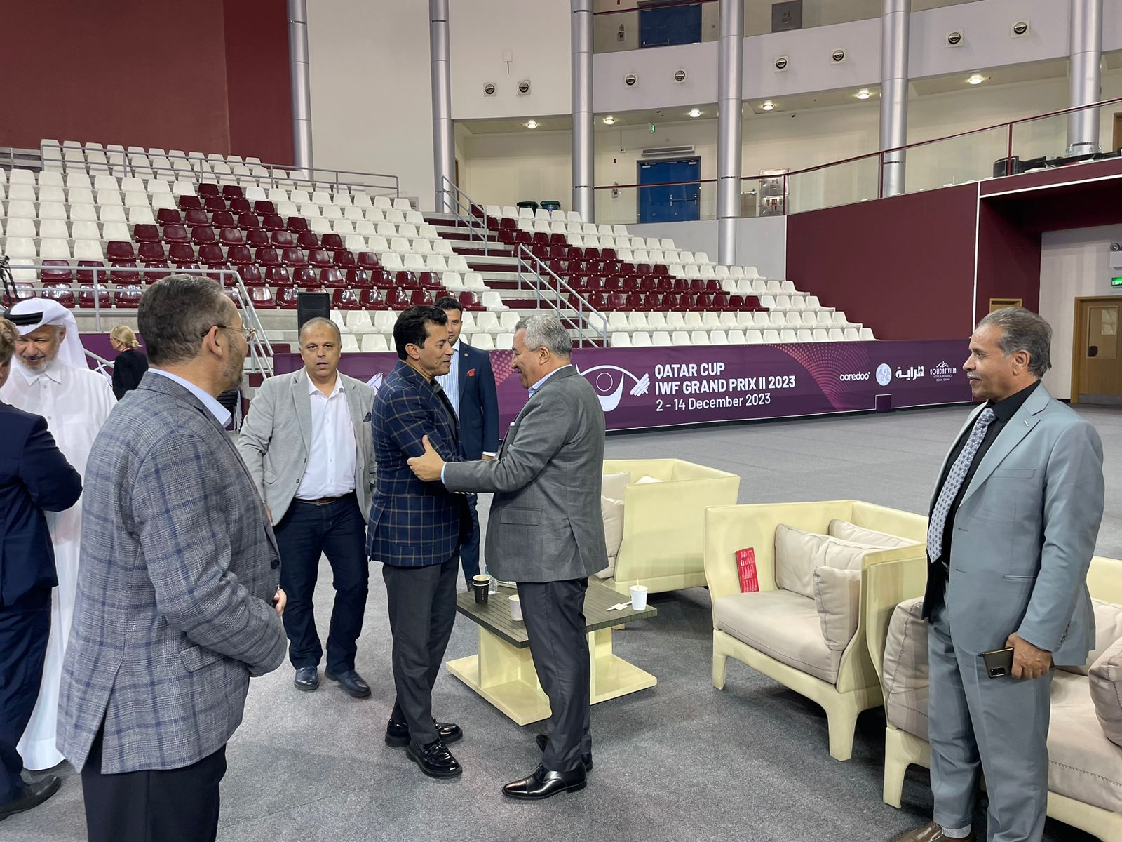 وعقب وصوله التقي سعادة السيد محمد يوسف المانع النائب الأول لرئيس اللجنة الأولمبية القطرية، رئيس الاتحاد القطري والعربي والآسيوي لرفع الأثقال، محمد عبد المقصود، رئيس الاتحاد المصري رفع الأثقال.
