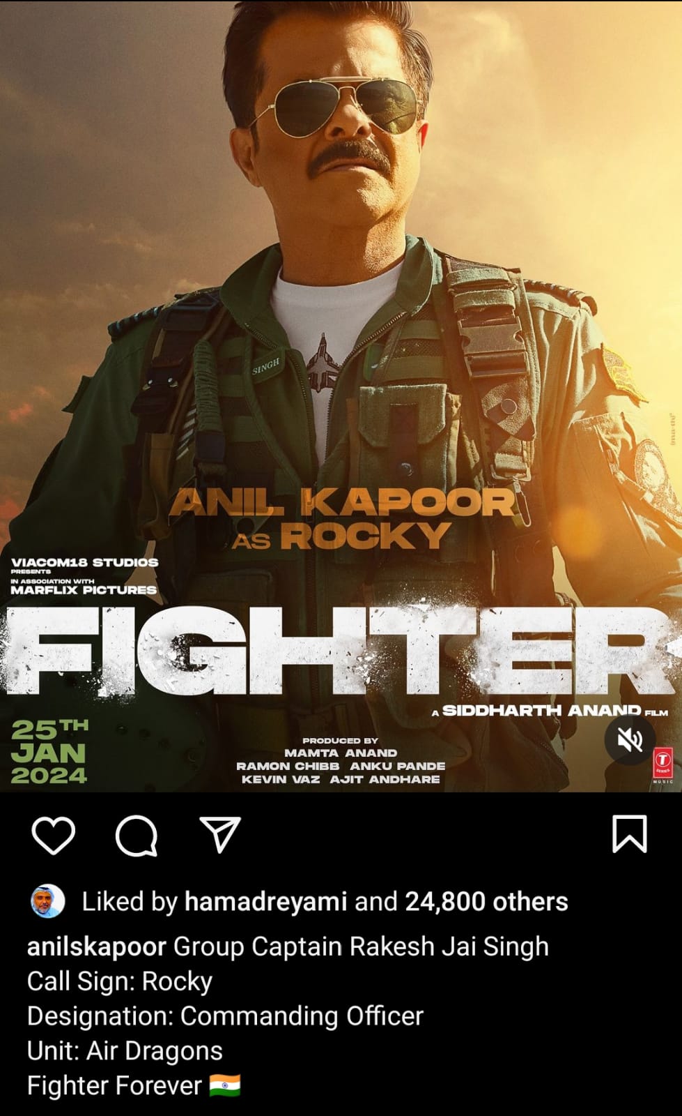 روج النجم الهندي أنيل كابور لمشاركته بفيلم " Fighter " والذي من المقرر طرحه في دور العرض الهندية يوم 25 يناير المقبل .