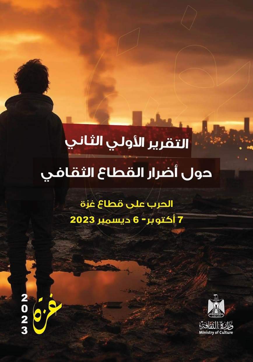 أصدرت وزارة الثقافة الفلسطينية التقرير الشهري الثاني الذي يرصد ما تعرّض له القطاع الثقافي الفلسطيني في المحافظات الجنوبية في قطاع غزة على مدى شهرين، نتيجة العدوان الإسرائيلي المستمر على شعبنا منذ السابع من أكتوبر الماضي.