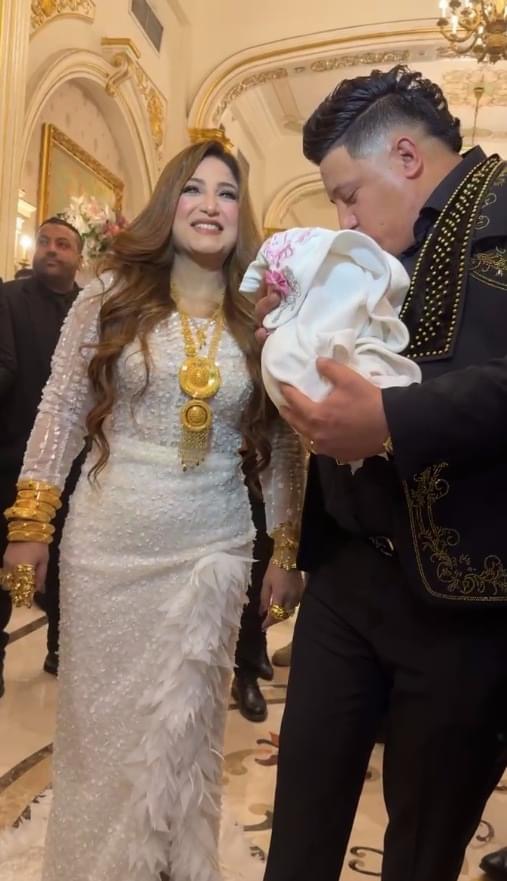 دراعها مليان دهب.. زوجة حمو بيكا تلفت الأنظار فى سبوع ابنتهم " تاج"