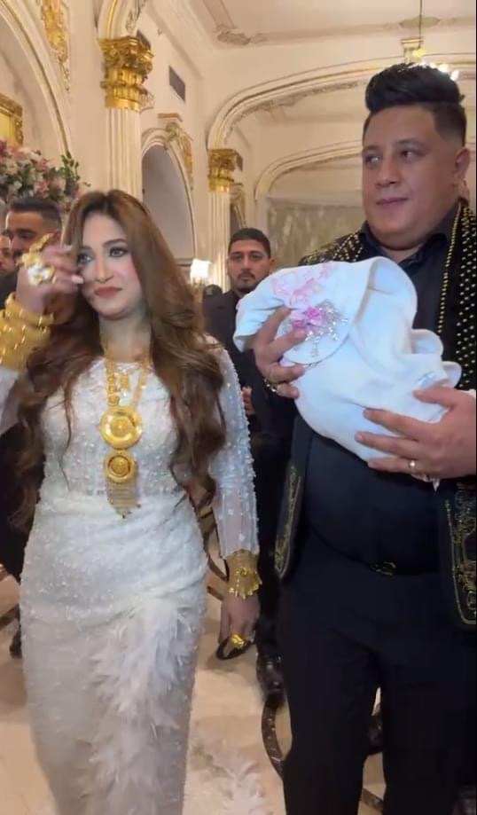 ولفتت زوجة مطرب المهرجانات حمو بيكا الأنظار إليها بسبب كمية المجوهرات والذهب الذى ترتديه فى السبوع .