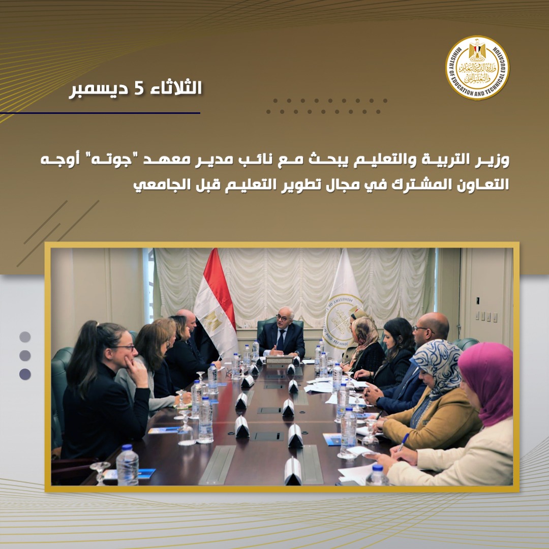 وقد رحب الوزير بالتعاون مع معهد جوته، خاصة في المشروعات التي تستهدف تطوير العملية التعليمية في مصر، مؤكدًا على العلاقات الممتدة مع معهد جوته والتي استمرت قرابة ٧٠ عامًا، وتقوم على الثقة المتبادلة.