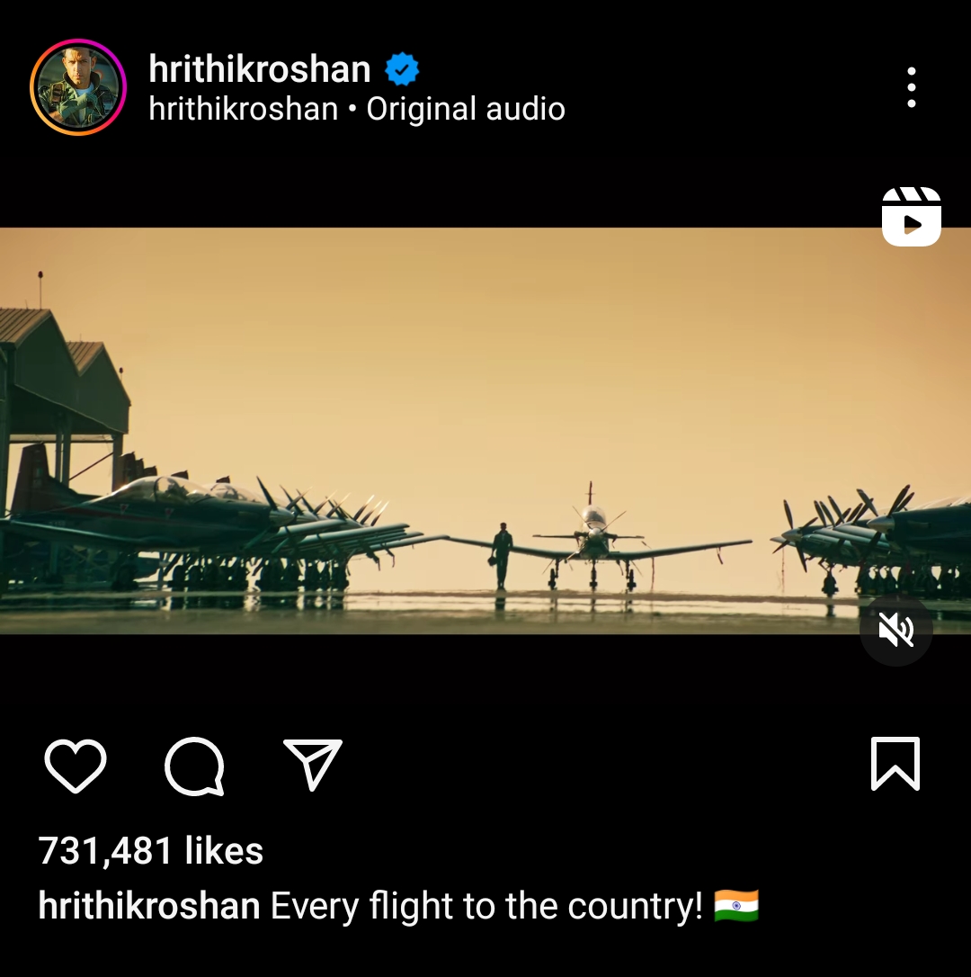 نشر ريثيك روشان، الإعلان الرسمي للفيلم على صفحته الرسمية عبر موقع تبادل الصور والفيديوهات "إنستجرام"، وعلق قائلا: " كل رحلة إلى البلاد ".