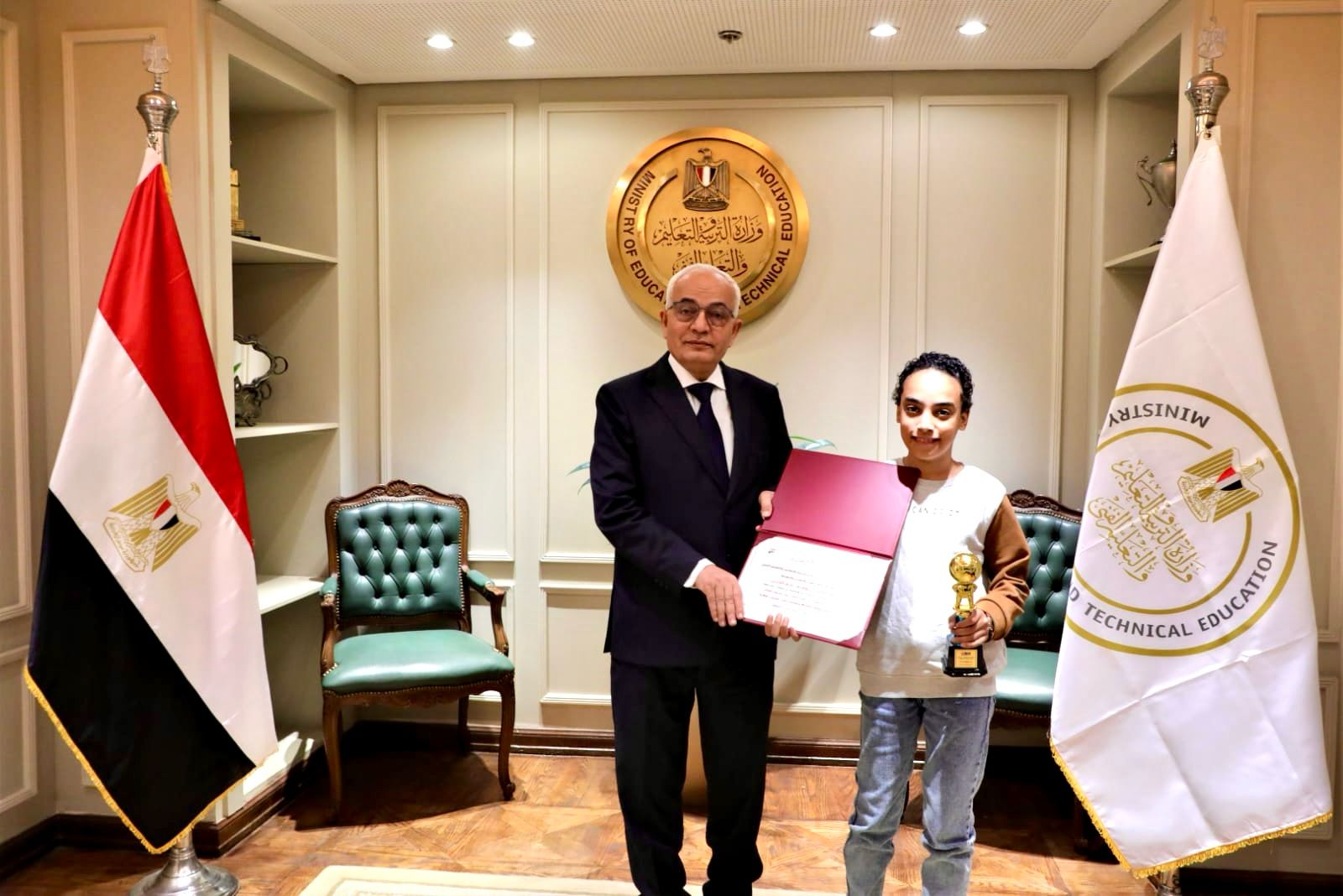 وزير التربية والتعليم يكرم الطالبان الحاصلان علي المركز الثالث عالميا في مسابقة"ucmas"الدولية