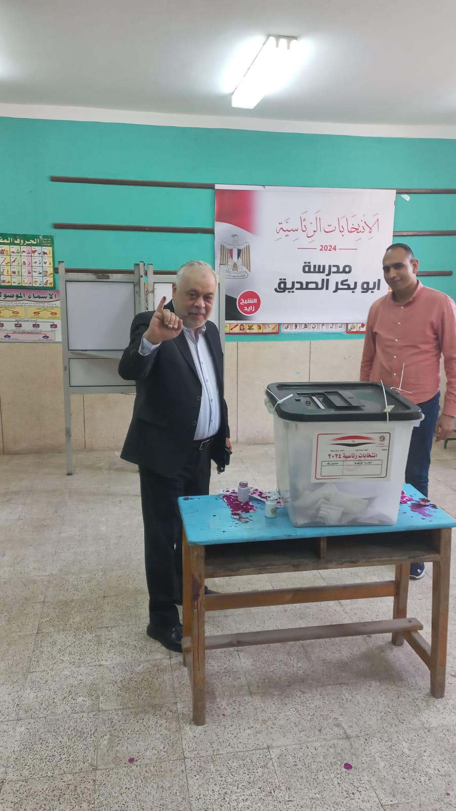 حرص الدكتور أشرف زكي نقيب المهن التمثيلية على الإدلاء بصوته فى الانتخابات الرئاسية 2024 داخل لجنة مدرسة أبو بكر الصديق بمدينة الشيخ زايد.