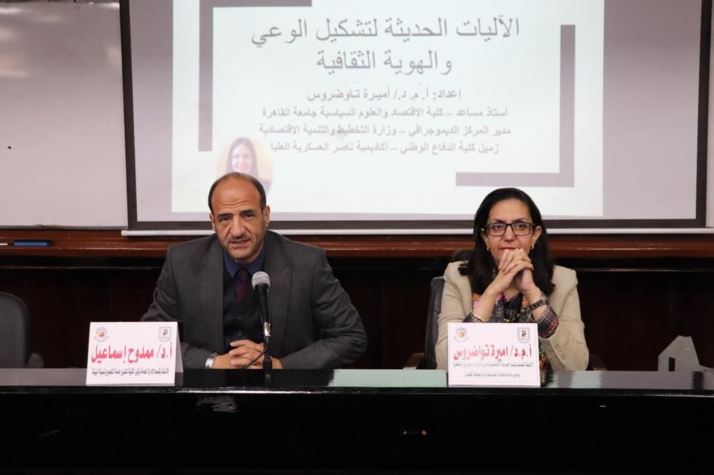 وقد نظمت الكلية في سبيل توعية منسوبي الكلية بضرورة المشاركة في الانتخابات الرئاسية الحالية ندوة بعنوان "الشباب وتحديات المستقبل" قدمها الدكتور علي الدين هلال وزير الشباب الأسبق، كما تم تنظيم ندوة بعنوان "الآليات الحديثة لتشكيل الوعي والهوية الثقافية" قدمتها الدكتورة أميرة تواضروس مديرة المركز الديموجرافي بالقاهرة، إلى جانب ندوة بعنوان "انزل شارك" قدمها الدكتور أيمن السعدني المدرس بكلية الحقوق جامعة القاهرة.
