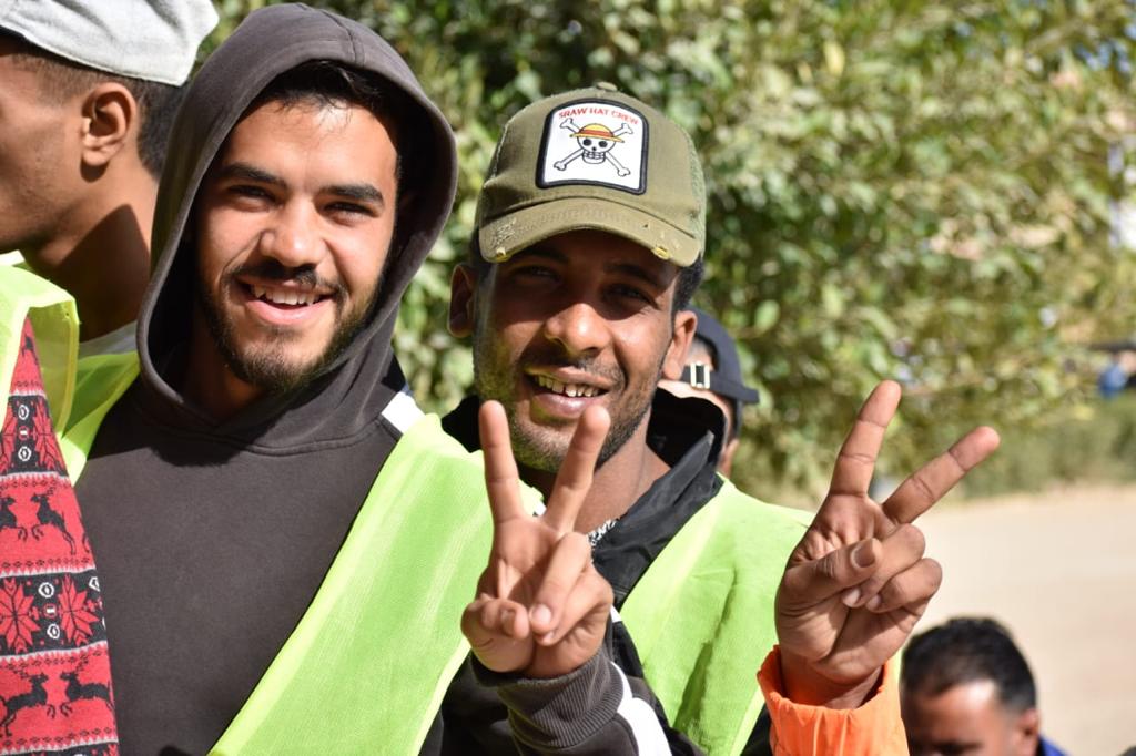 وردد العاملون عبار ات " تحيا مصر" و مصر أم الدنيا"، كما حرصت قوات الأمن علي تنظيم الصفوف والطوابير أمام اللجان وتوفير استراحات.