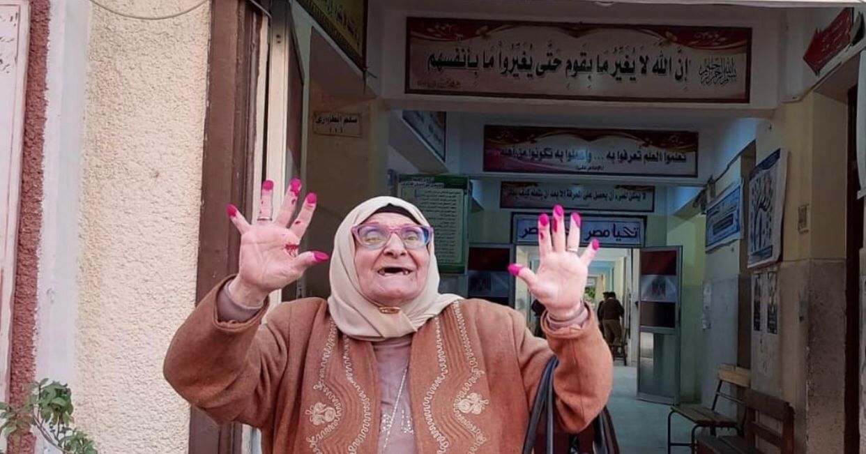 بصمت بالعشرة.. الحاجة سامية تدلي بصوتها بالانتخابات الرئاسية في المنيا
