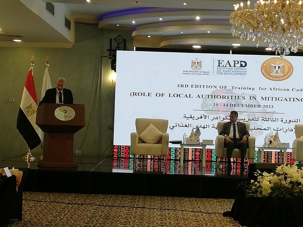 جاء ذلك خلال الكلمة التي ألقاها السفير/ محمد حجازي مستشار وزير التنمية المحلية للتعاون الدولي، نيابة عن اللواء هشام آمنة وزير التنمية المحلية، خلال افتتاح برنامج الدورة التدريبية الثالثة للكوادر المحلية الأفريقية 2023 فى مجال دور الإدارات المحلية في مجابهة الهدر الغذائي، اليوم الأحد والتي تنظمها الوزارة بالتعاون مع الوكالة المصرية للشراكة من أجل التنمية بوزارة الخارجية المصرية، وتستمر لمدة 5 أيام حتى 14 ديسمبر الجاري .
