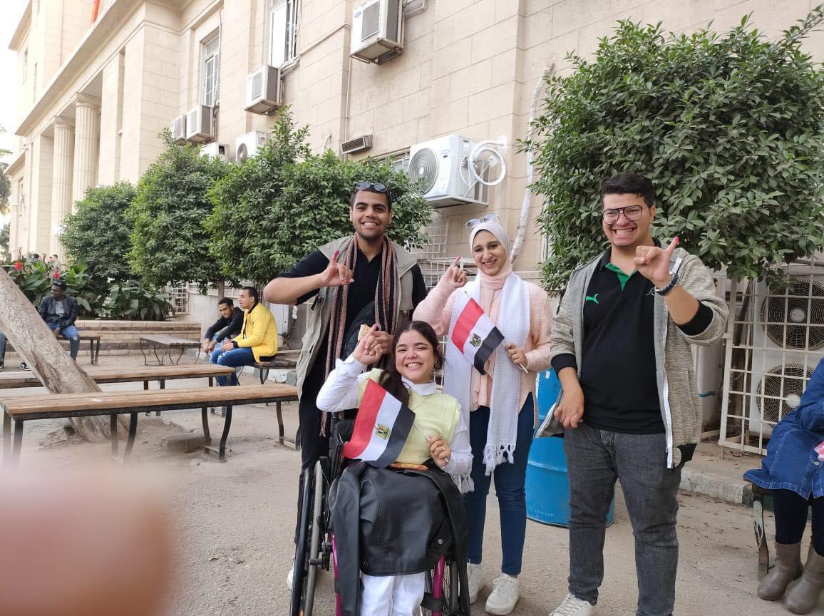 مصر جميلة.. في ردود أعلنها “ذوي الهمم”، سنشارك وندعم مصر بالمشاركة في كل محافظة، حيث حرص ذوى الهمم من طلاب جامعة القاهرة المشاركة في الانتخابات الرئاسية بالرغم من التحديات، وأكد ذوى الهمم أن حرصهم ينبع من حبهم لمصر وحرصهم على مستقبل أفضل، وتأكيديهم على ضرورة المشاركة الايجابية فى هذا العرس الديمقراطي.