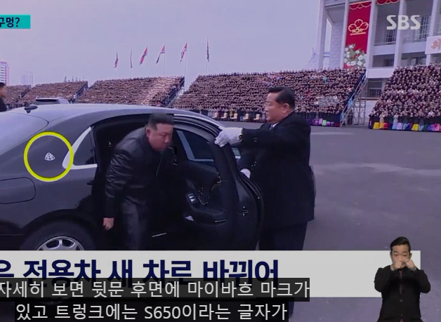 وبحسب تلفزيون "SBS" الكوري الجنوبي، تحمل السيارة علامة "مايباخ" على الباب الخلفي، والأرقام "S650" على صندوقها. وقالت القناة إن سيارة "مرسيدس مايباخ" الألمانية جديدة، تم شحنها اعتبارا من عام 2019.