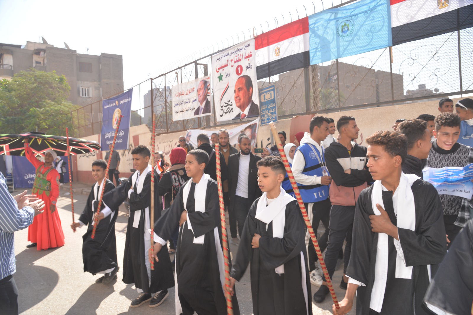 حيث اصطف المواطنين أمام عدد من اللجان كـ( مدرسة خديحة يوسف الثانوية بنات ، مدرسة الشهيد أحمد فايز ، مدرسة طه حنفي ،ومدرسة الفاروق الرسمية للغات ...) وغيرها من اللجان رافعين الاعلام ، وخرجوا فى مسيرات لحث المواطنين على النزول والمشاركة فى الانتخابات مستخدمين الطبل البلدى والاغانى الوطنية وترديد الزغاريد تعبيرا عن فرحتهم ، كما حرص الشباب من الجنسين على المشاركة في عملية الاقتراع والوقوف أمام اللجان الانتخابية لاختيار رئيس الجمهورية لمدة 6 سنوات قادمة بين 4 مرشحين وعلى مدار 3 أيام.