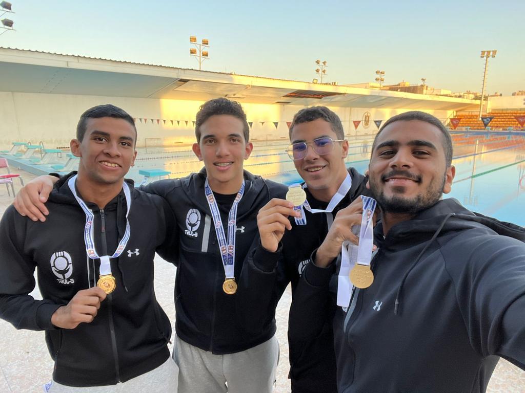 أضاف كما حصل كل من الطلاب جودي شريف الماس ، ملك محمد فاروق ،مصطفي نبيل السيد ، عبدالرحمن محمد محمود على المركز الاول تتابع مكس4*50M mono