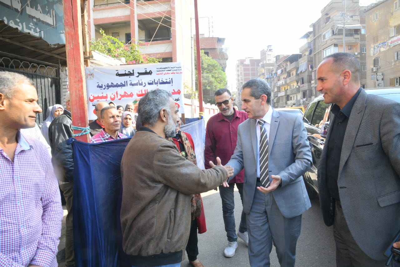 كما التقى بعدد من الناخبين الذين قاموا باصطحاب أطفالهم الذين غمرت الفرحة والسعادة وجـوهـهـم ورفعوا الأعلام وتزينوا بارتداء العلم المصري.