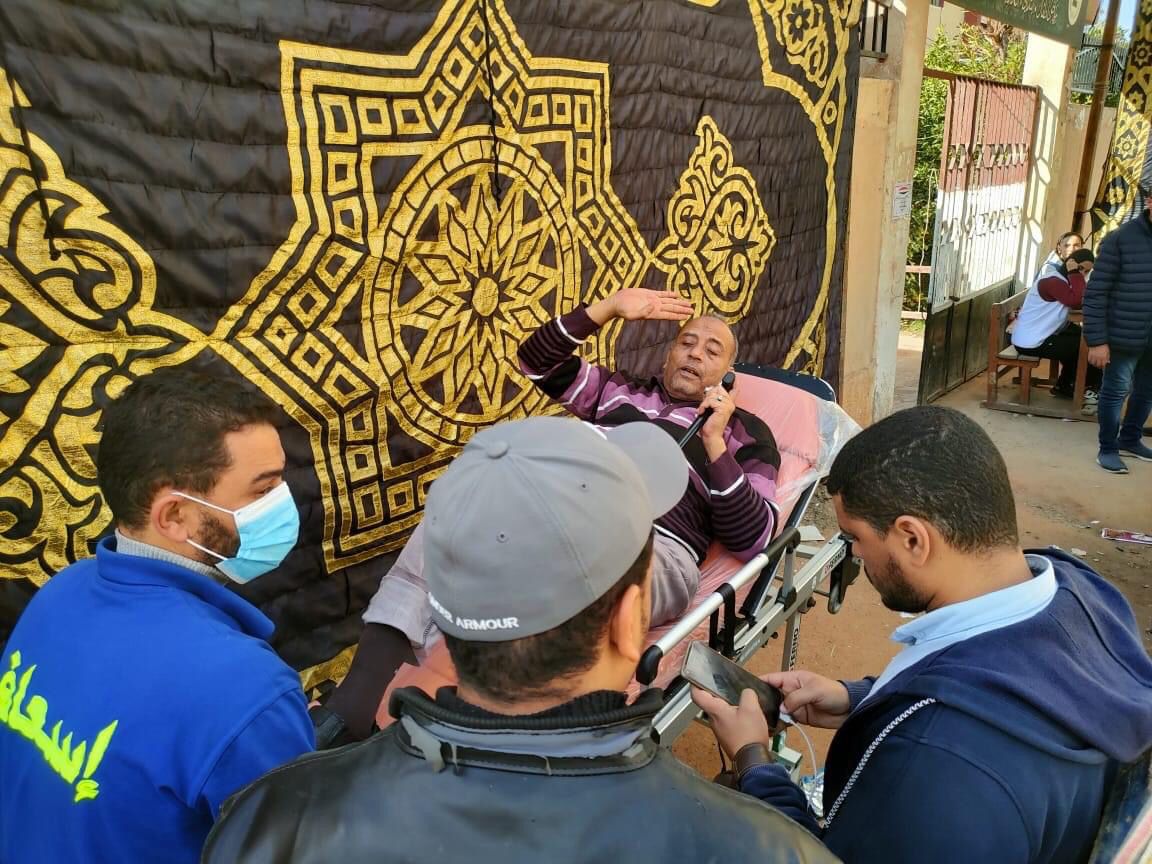 مريض على سرير طبي يدلي بصوته في كفر الشيخ بالانتخابات الرئاسية (صور)
