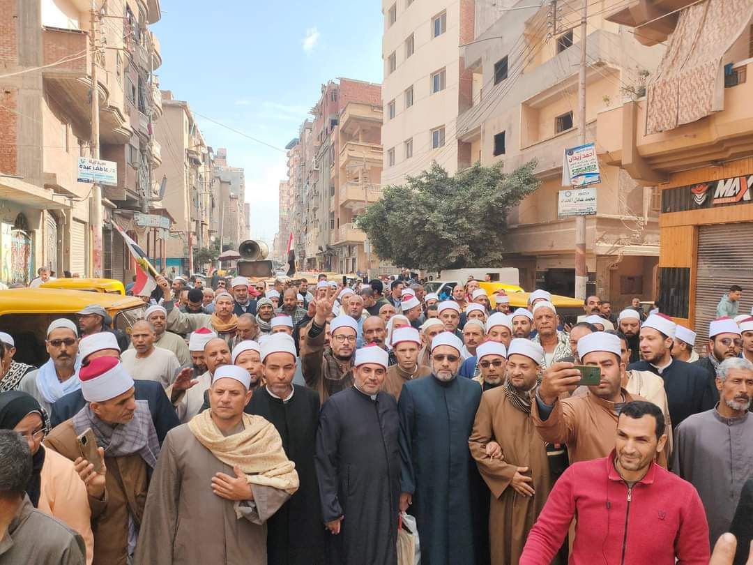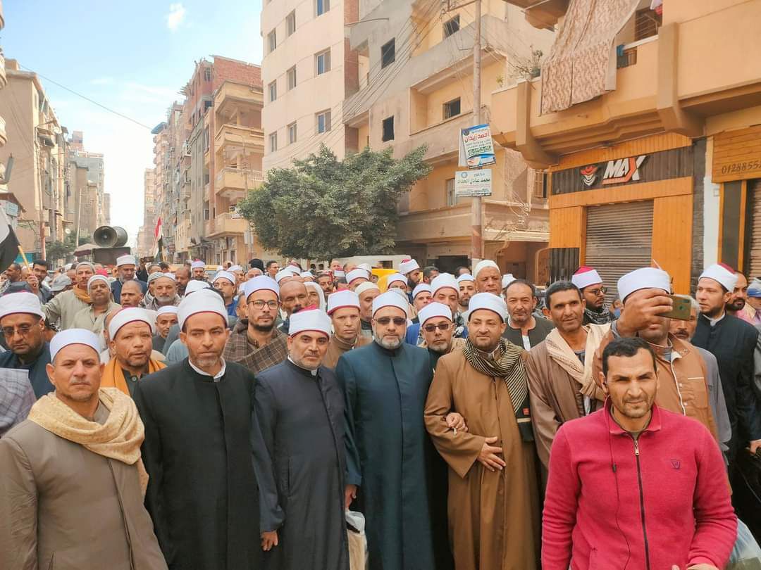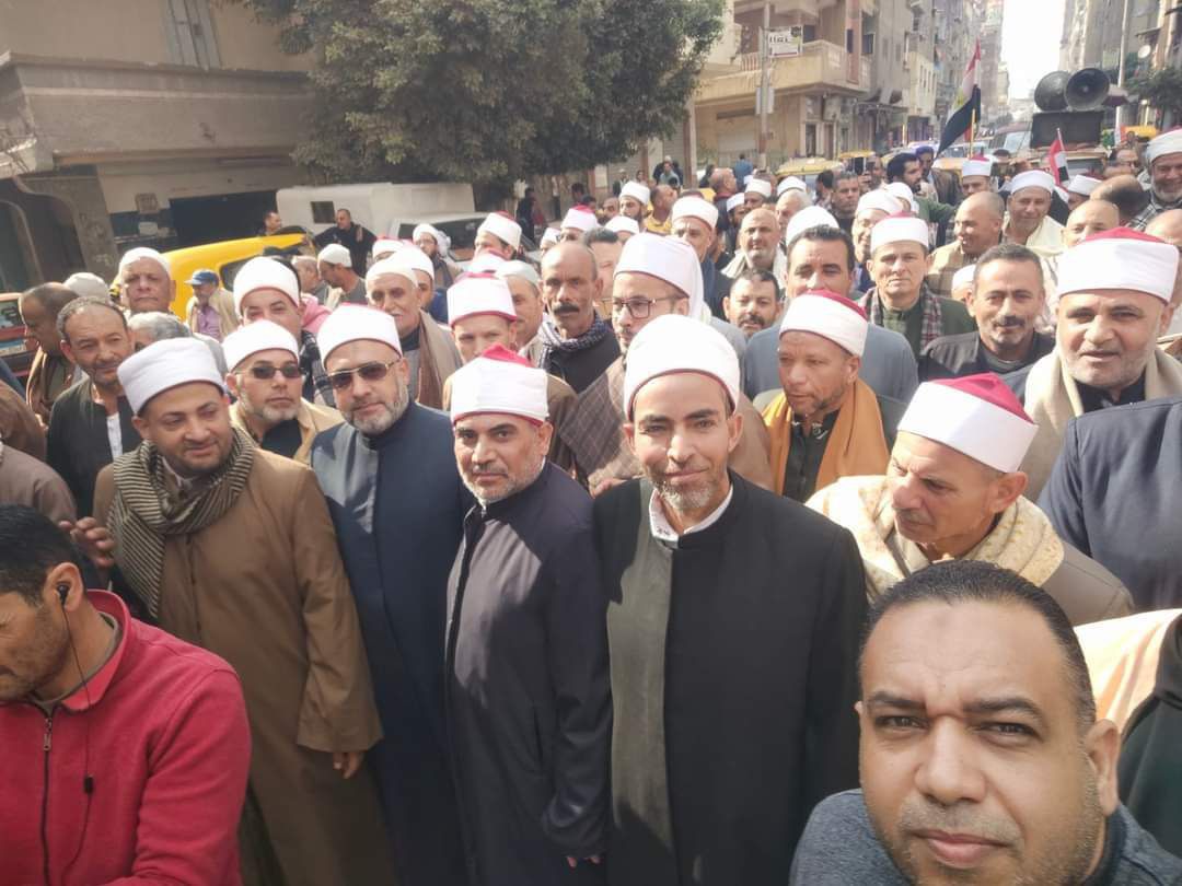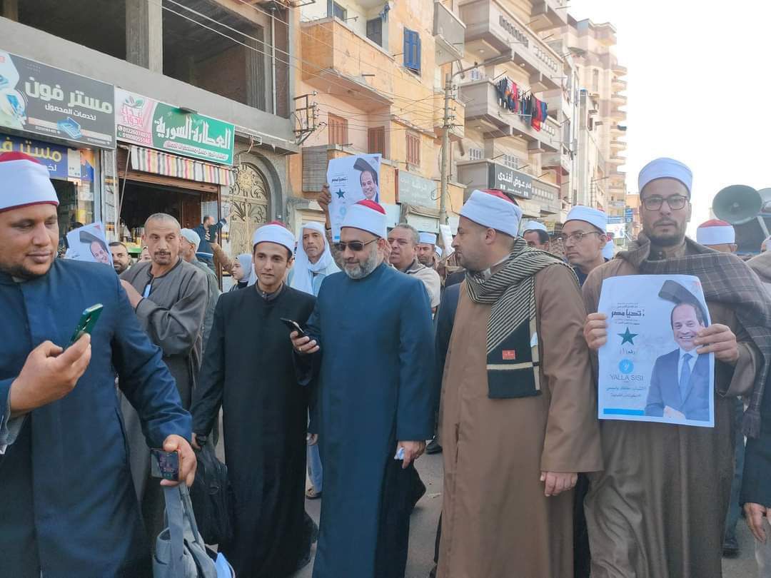 وبدأت مسيرة أصحاب العمائم البيضاء تجوب في شوارع مركز المحمودية، يصطفوا بجانب بعضهم البعض حاملين صورة مرشحهم الإنتخابي عبد الفتاح السيسي ويعلو صوت الهتافات بمقولة “تحيا مصر تحيا مصر”، الدالة على الحب والولاء لـمصر، مناشدين الأهالي والشباب على المشاركة في الإنتخابات الرئاسية لبناء مستقبل الوطن.