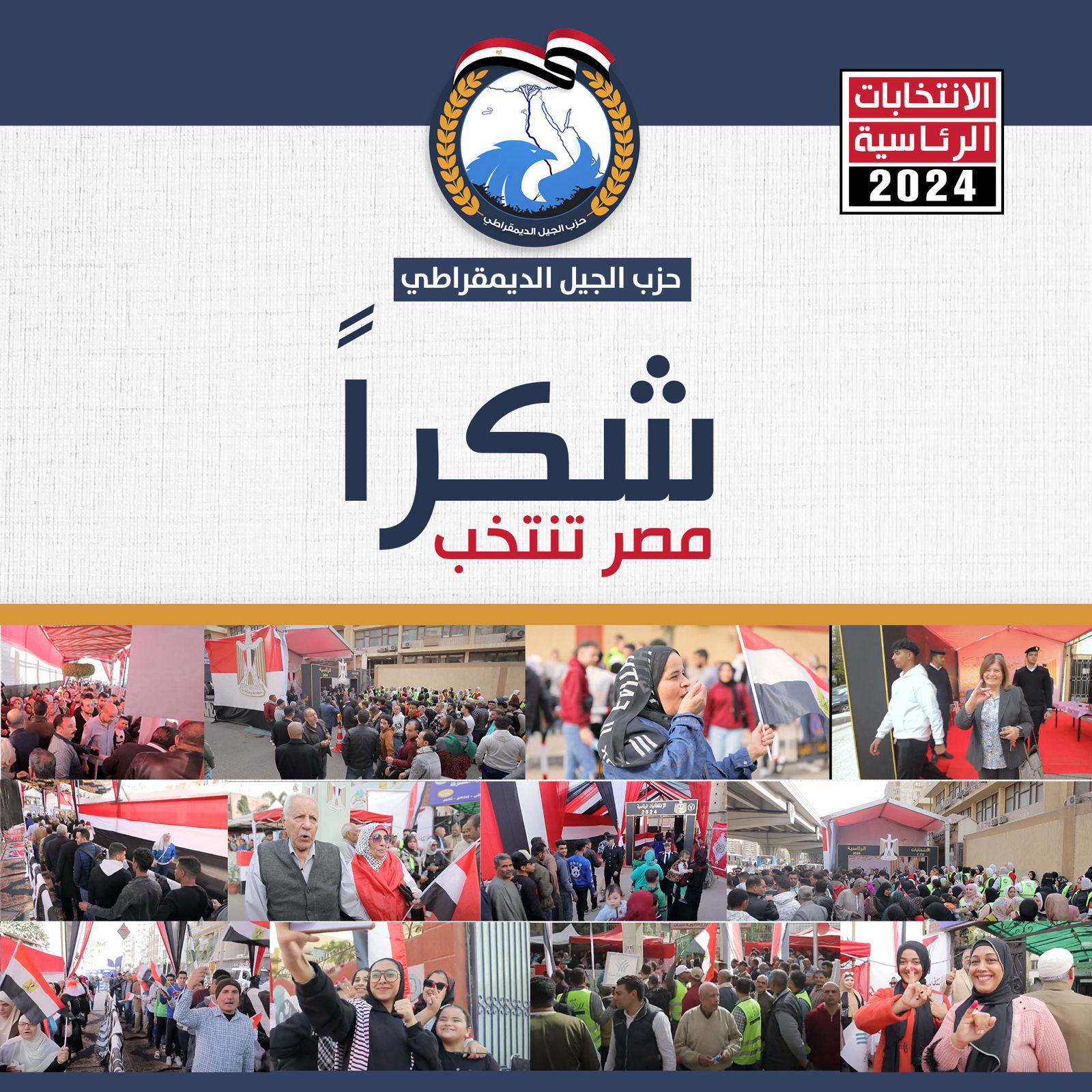 حزب الجيل الديمقراطي يشكر الشعب المصري لمشاركته الإيجابية في الانتخابات الرئاسية
