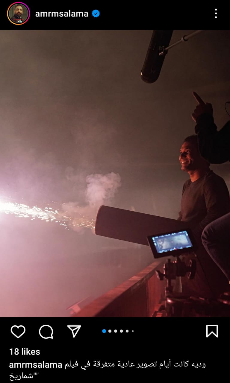 نشر عمرو سلامة صورة من كواليس فيلم شماريخ على صفحته الرسمية عبر موقع تبادل الصور والفيديوهات " إنستجرام " وعلق قائلا " ودي كانت أيام تصوير عادية متفرقة في فيلم شماريخ " .