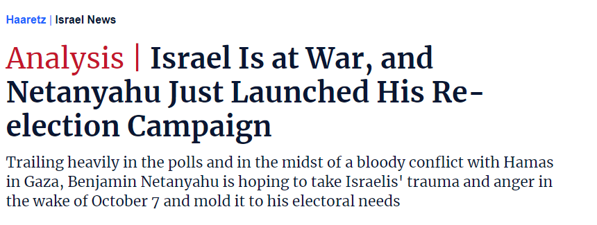واعتبرت الصحيفة أن نتنياهو قد بدأ بالفعل حملته الانتخابية أمس، 12 ديسمبر الجاري، رغم أن البلاد في حالة حرب.
