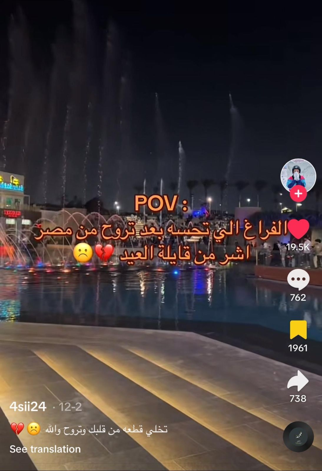 تداول رواد مواقع التواصل الاجتماعى ، منشور لفيديو لمواطن ليبي وهو يتحدث عن ارتباطه بمصر وحزنه بعد السفر منها بعد انتهاء إجازته قائلا “ الفراغ اللى بتحسه بعد تروح من مصر أشر من قايله العيد”.