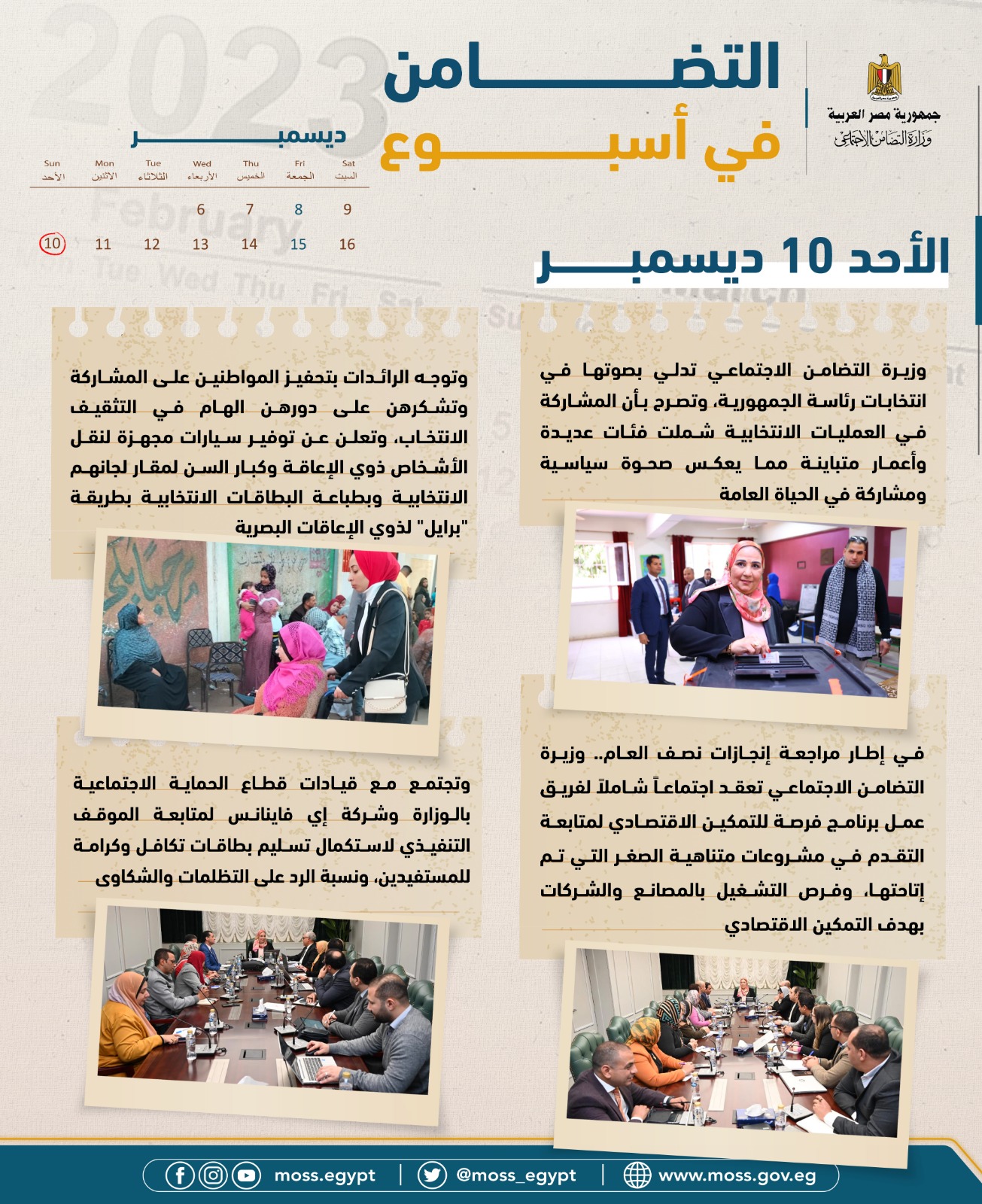 - غرفة عمليات التضامن الاجتماعي تواصل متابعة الانتخابات الرئاسية وتنظم جهود الرائدات الاجتماعيات، وترصد تيسير مشاركة ذوي الإعاقة وكبار السن في العملية الانتخابية.