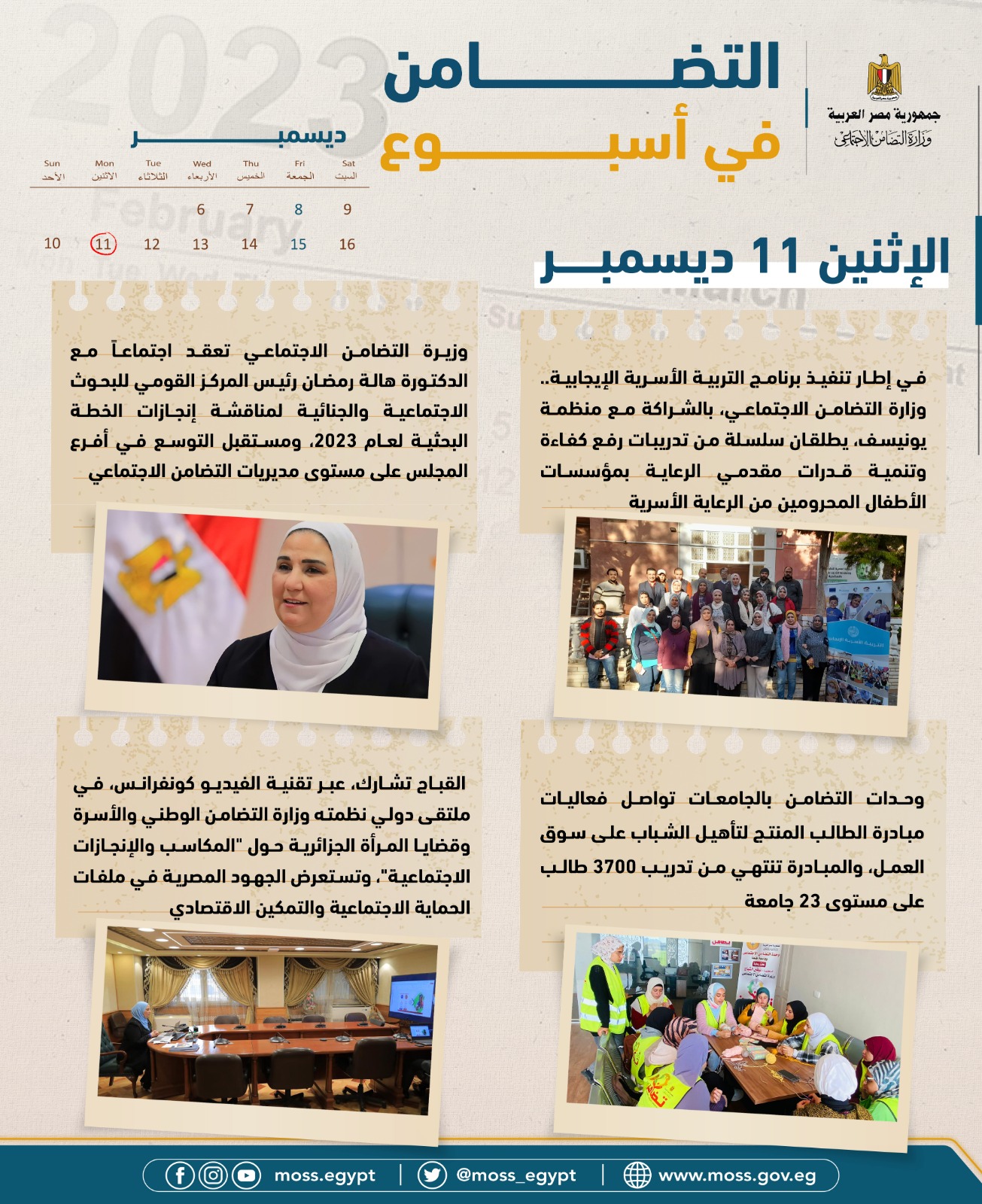 الحصاد الأسبوعي لأنشطة وزارة التضامن الاجتماعي